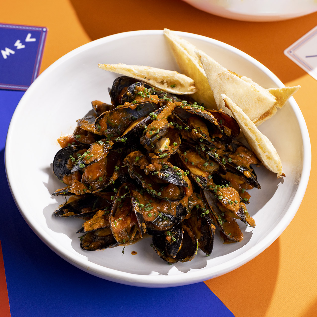 Зачем идти. В дровяной печи запекают цыпленка с карри и фетой, на гриле делают сибаса и сувлаки из баранины. Среди закусок не скрыться от привычных дипов вроде хумуса или мухаммары, но если хотите чего-то поинтереснее, заказывайте тарамасалату с красной икрой или небольшие котлеты кефтедес с дзадзики. На горячее предлагают еще больше тематической комфортной еды: греческий мясной пирог с пармезаном, говяжью вырезку со сморчками и осьминога с печеными перцами.