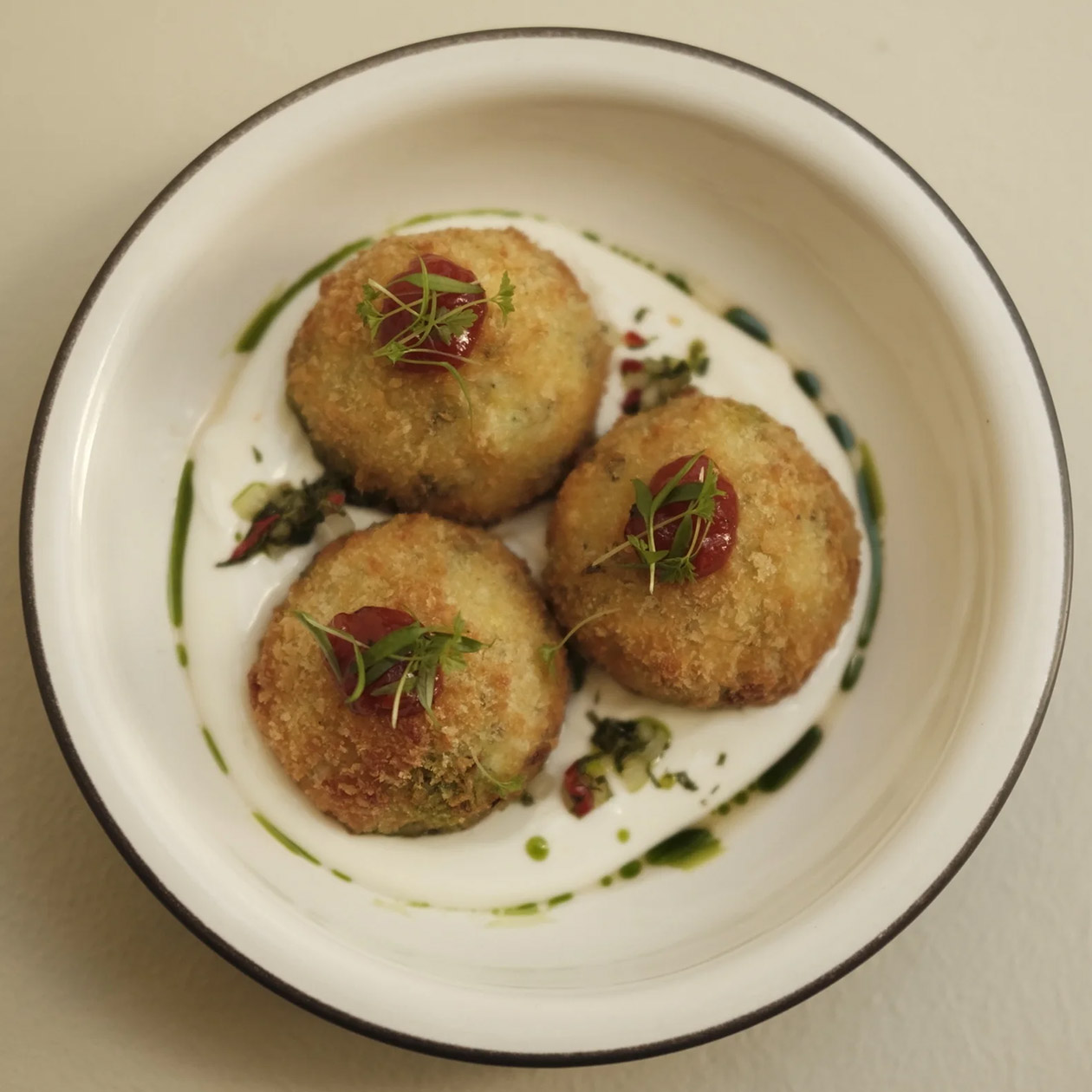 Зачем идти. Меню выстроено так, чтобы пройтись по греческой гастрономии в разных ее проявлениях. Есть привычные мезе — тарамасалата, фава с бычьими хвостами, крокеты из цукини — и блюда посолиднее: томленая голень ягненка, осьминог с кремом из бобов, мусака с говядиной. Из неожиданных находок — печеный халуми с йогуртом и трюфелем или ньокки из брынзы с черной икрой.