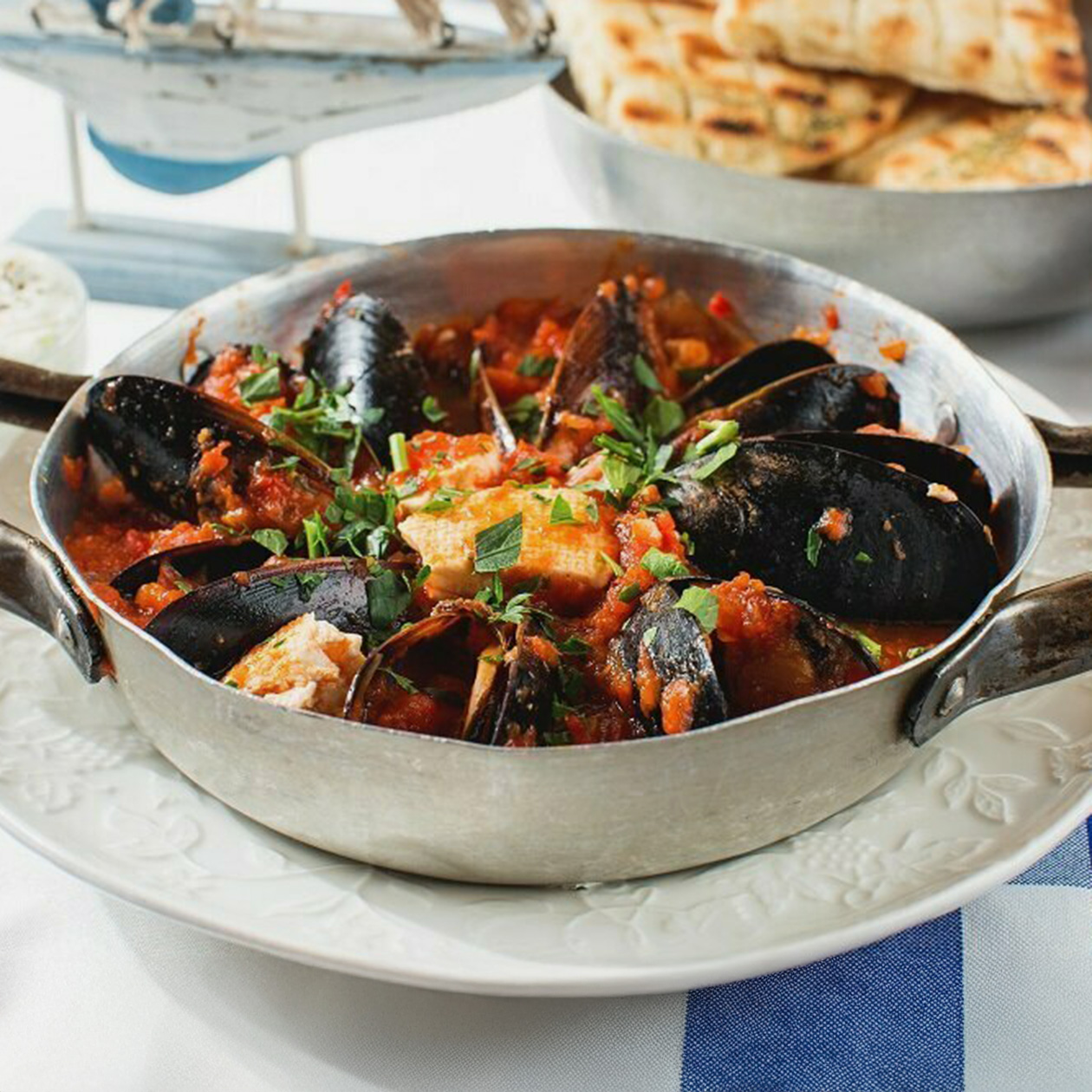 Зачем идти. Традиционные рецепты в заведении используют активно: из феты, помидоров и острого перца делают сырную запеканку буюрди, куриный суп котосупа варят с рисом и лимоном, а в томатно-овощном соусе приносят мидии или креветки саганаки. Питу, главный греческий стритфуд, подают с 11 вариантами начинок: от кальмаров во фритюре до котлет судзукакья из говядины Black Angus.