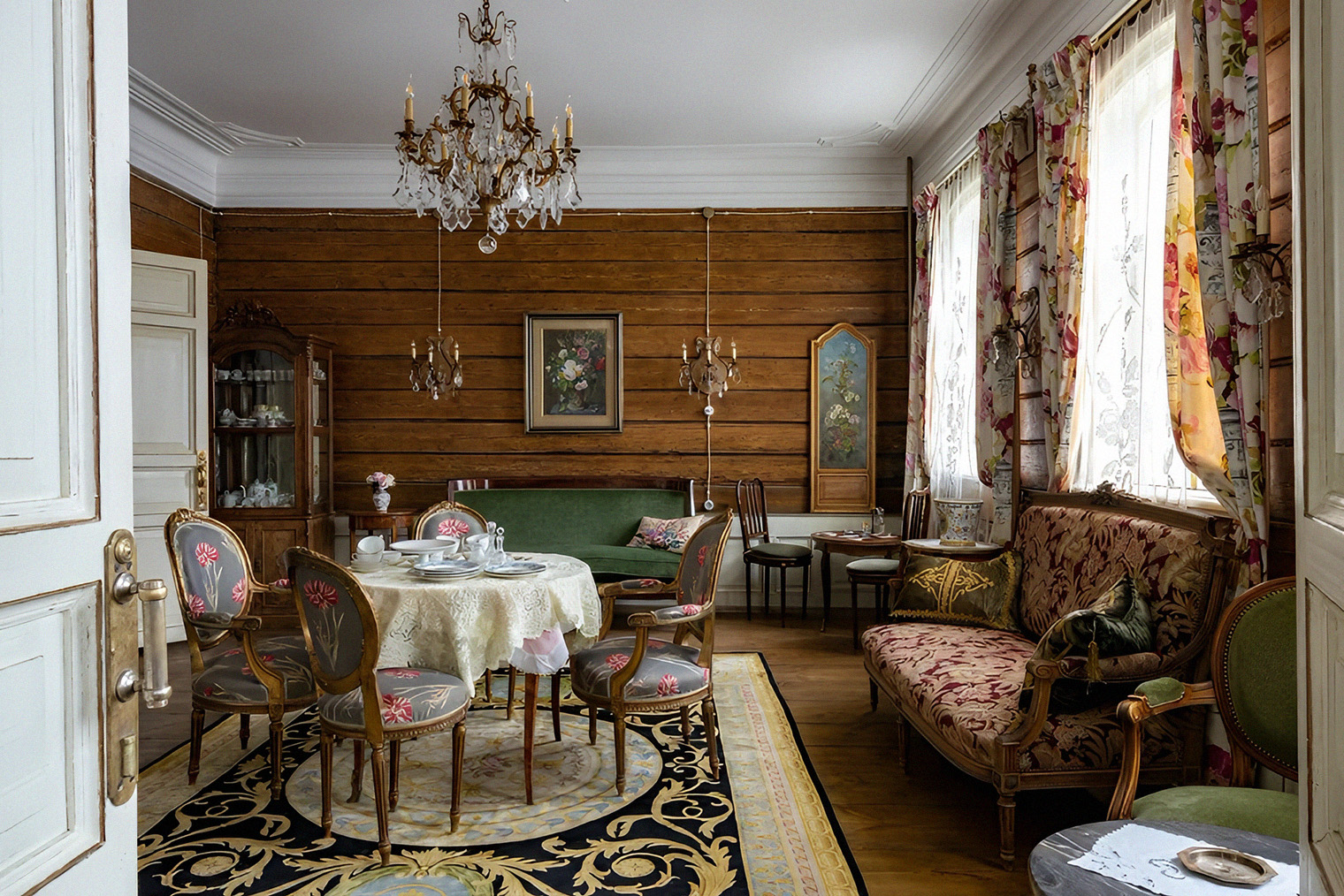 История. В 19 веке дом построили по заказу купцов Галицких. С тех пор здание обветшало, но в нем сохранилась часть исторического декора и планировка — это стало одной из причин, по которой в 2010 году дом купила семейная пара, решившая уехать из Москвы в провинцию. Десять лет они реставрировали здание и обставляли его старинными предметами, большую часть из которых привезли из Парижа.