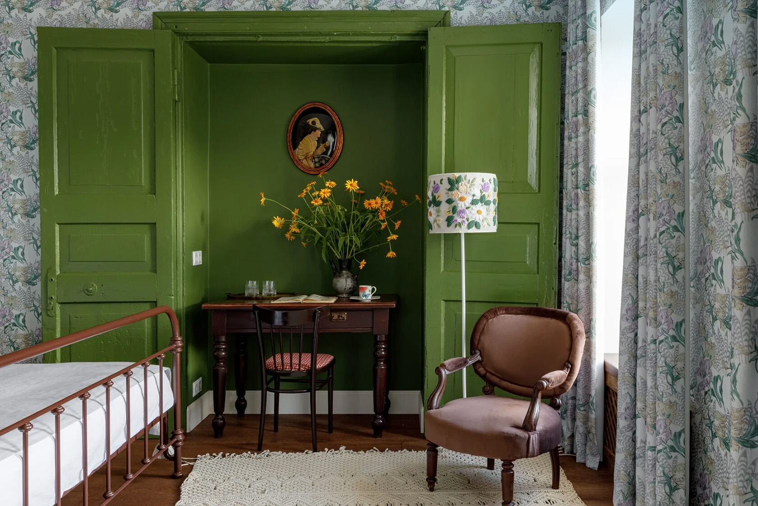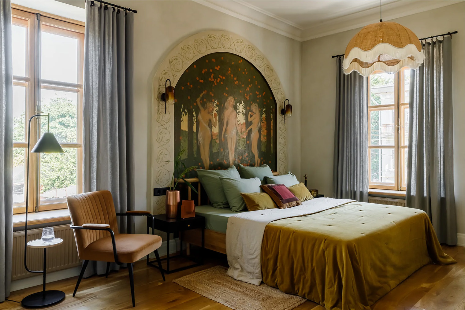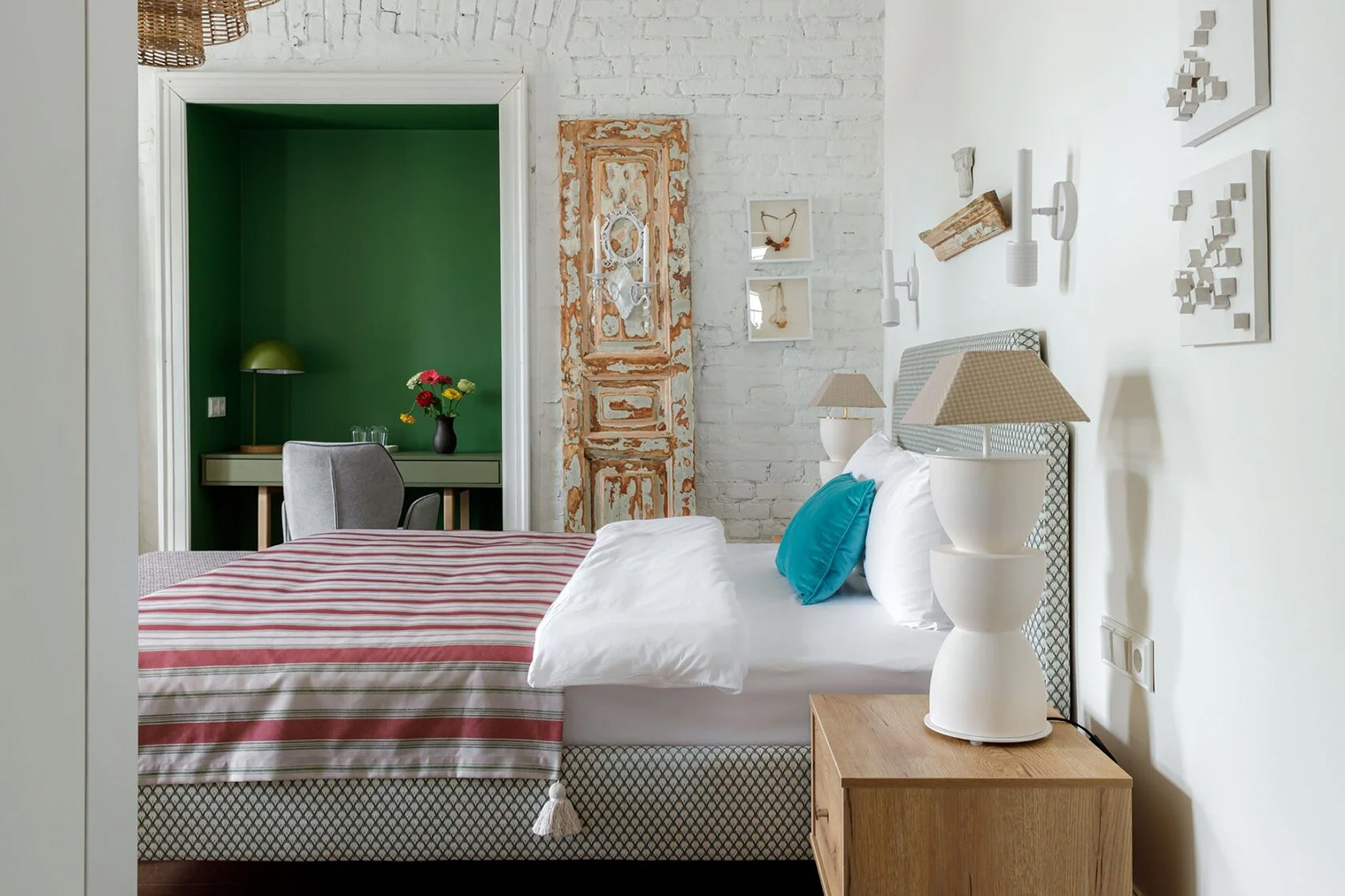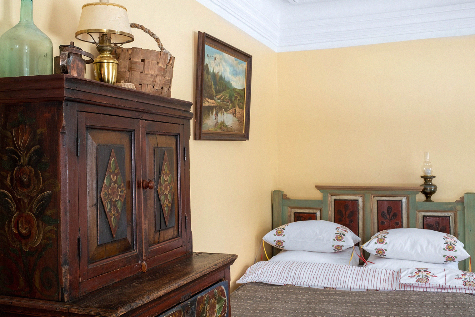 Обстановка. В отеле восемь номеров разных категорий. Планировку дома почти не меняли: комнаты сохранили пропорции исторических квартир. В интерьерах уцелели 12 кирпичных печей — все они рабочие, оригинальные двери в стиле модерн и окна с исторической расстекловкой. Часть поверхностей оставили без покраски, сохранив патину времени. Мебель для номеров и общих пространств изготовил локальный бренд Valkeda.