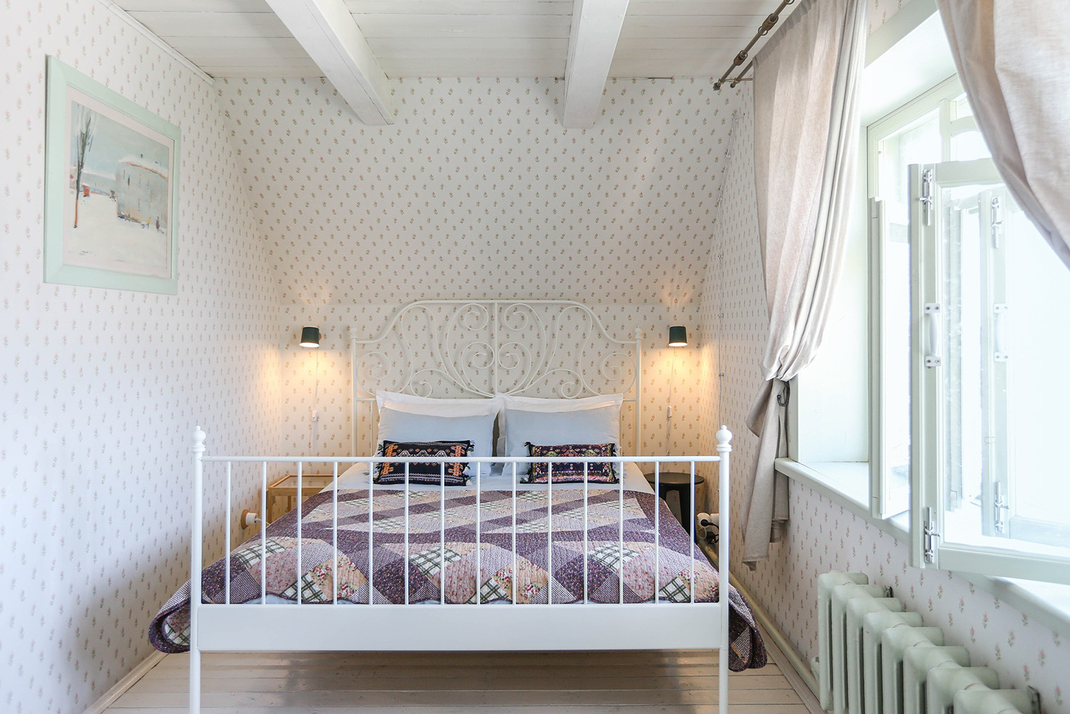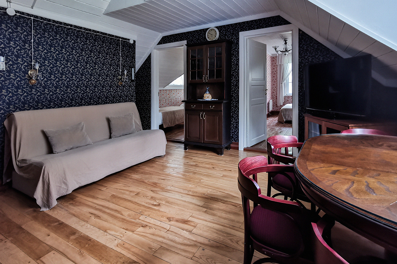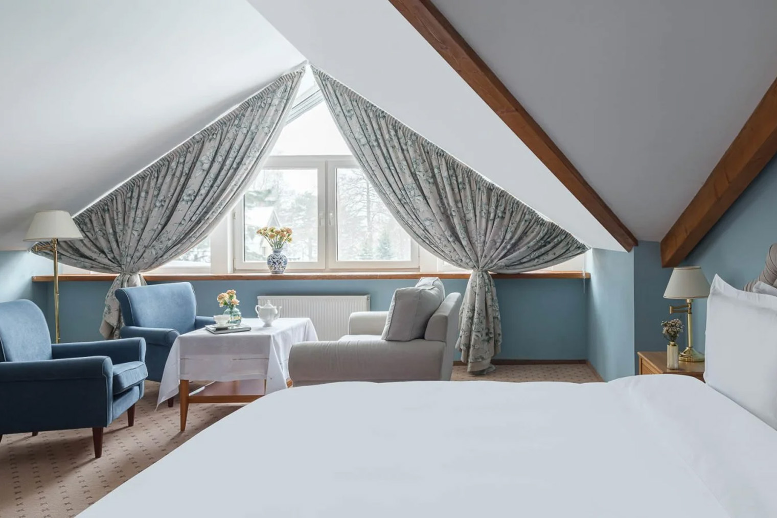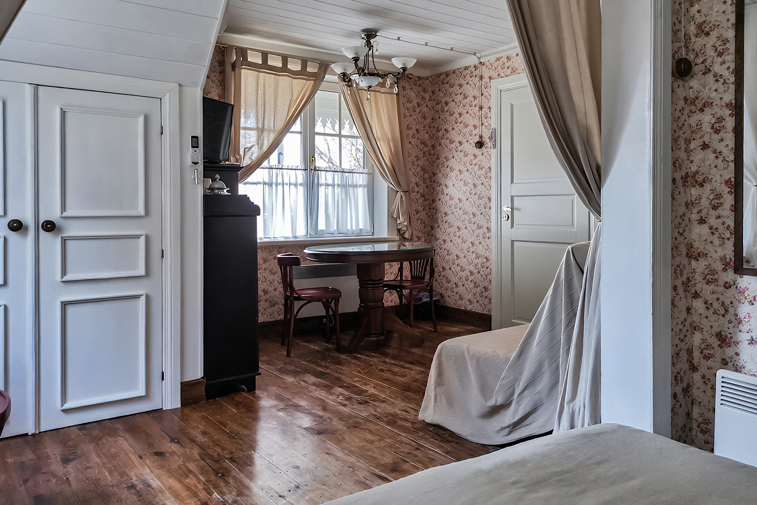 Обстановка. В отеле 13 номеров разных категорий — от компактных «Комфорт» и «Бизнес» до «Студий» и «Люкса». Планировку и масштаб помещений сохранили близкими к историческим, вписав в них современный уровень комфорта. В интерьерах сделан акцент на архитектуру дома: дерево, спокойная цветовая палитра, внимание к деталям без декоративной перегруженности.
