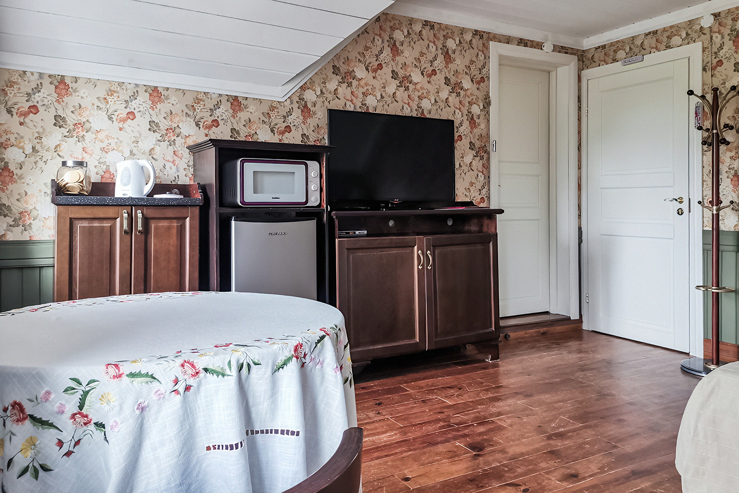 Обстановка. В отеле девять номеров и общая терраса с видом на Волгу. Кроме гостиницы здесь есть бильярд, библиотека, музей посуды, русский погреб с домашними вареньями и соленьями и сувенирная лавка с авторскими игрушками и посудой.