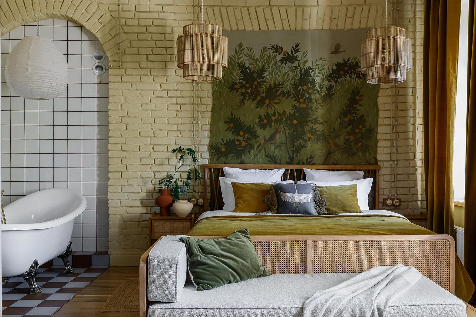 Обстановка. В отеле восемь номеров, каждый назван в честь исторических личностей, связанных с ближайшими кварталами. В интерьерах сохранились подлинные элементы здания: в одном из номеров — печь без облицовки, восстановленная при участии Чебоксарского художественного училища, в двух — фрагменты 150-летнего деревянного сруба. Обои подбирали на основе архивных документов, а ванные комнаты укомплектованы уходовой косметикой казанского бренда «Заводъ братьевъ Крестовниковыхъ».