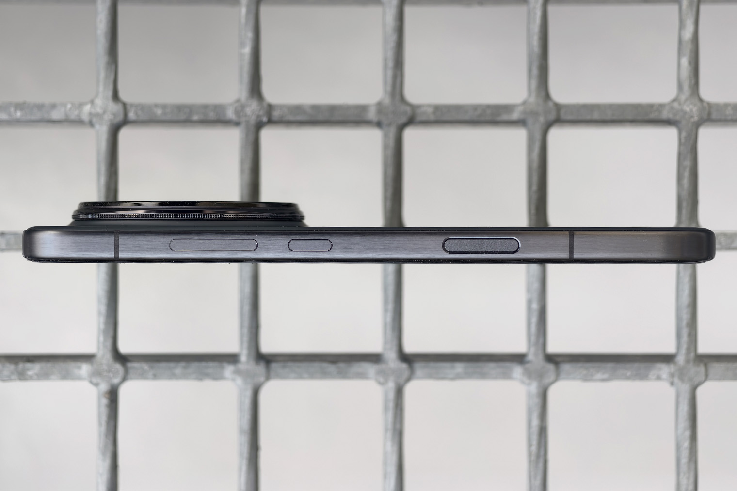 Аппарат крупный, но не ощущается громадным, дизайн черной версии сдержанный и строгий. Главная новая фишка — универсальная кнопка на правом боку. Она напоминает Action Button на iPhone, но расположена под большим пальцем — где Camera Control. Одинарное, двойное и долгое нажатия можно настроить по своему вкусу — оказалось удобно, практично и не так навязчиво, как выделенная кнопка исключительно для камеры.