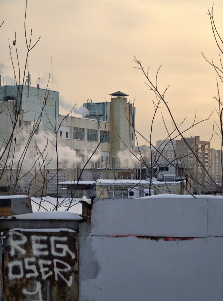 Фото с забором и хлебозаводом получилось у обоих смартфонов хорошо: Vivo сфокусировался на здании и фактурном дыме из труб, а Honor отдал предпочтение забору с граффити. Золотистый закат лучше передан на Vivo, но тут разница не так уж значительна.