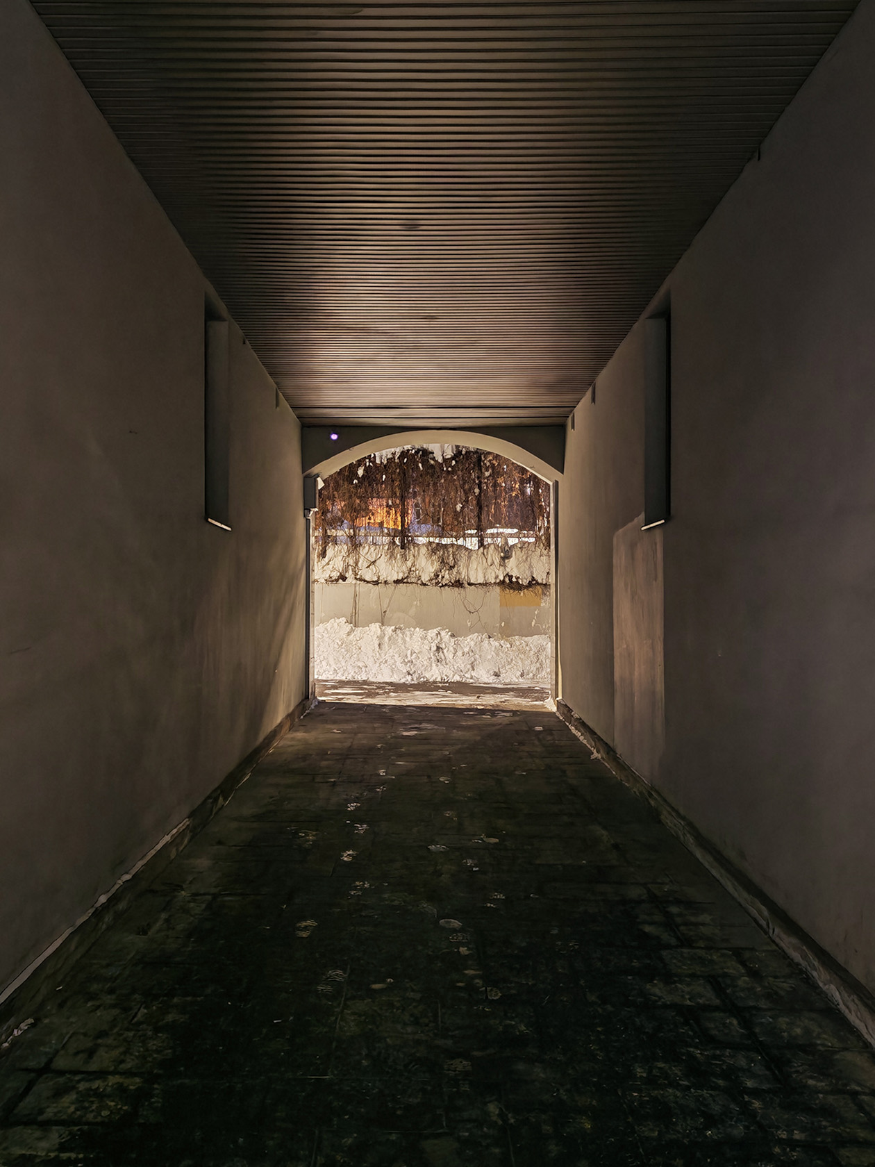 У Vivo основная камера снимает в необычном фокусном расстоянии 35 мм — это примерно как 1,5× на любом другом смартфоне. Поэтому в кадр на Honor без приближения влезло много лишнего пустого пространства, а елки и зеркальная стена привлекают меньше внимания зрителя.