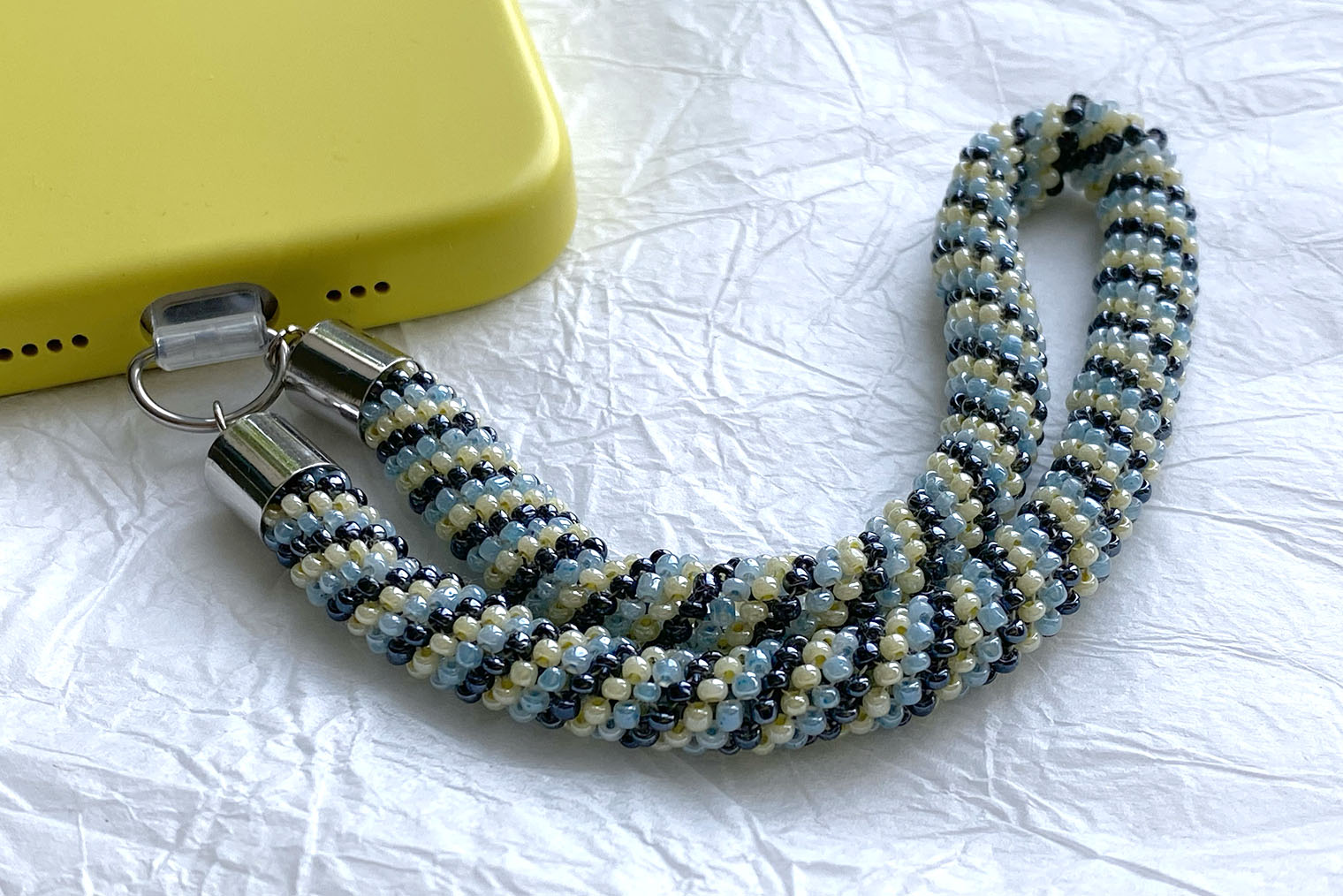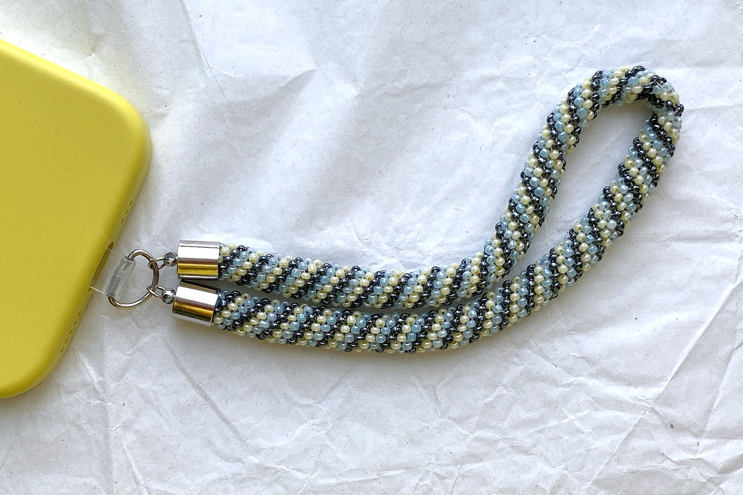 Длина подвески — около 30 см. Ее удастся сплести за полторы-две недели, если не торопиться. Потребуется: бисер — важно брать одного размера, иголка, нитка или леска, концевики и вкладыш для телефона.
