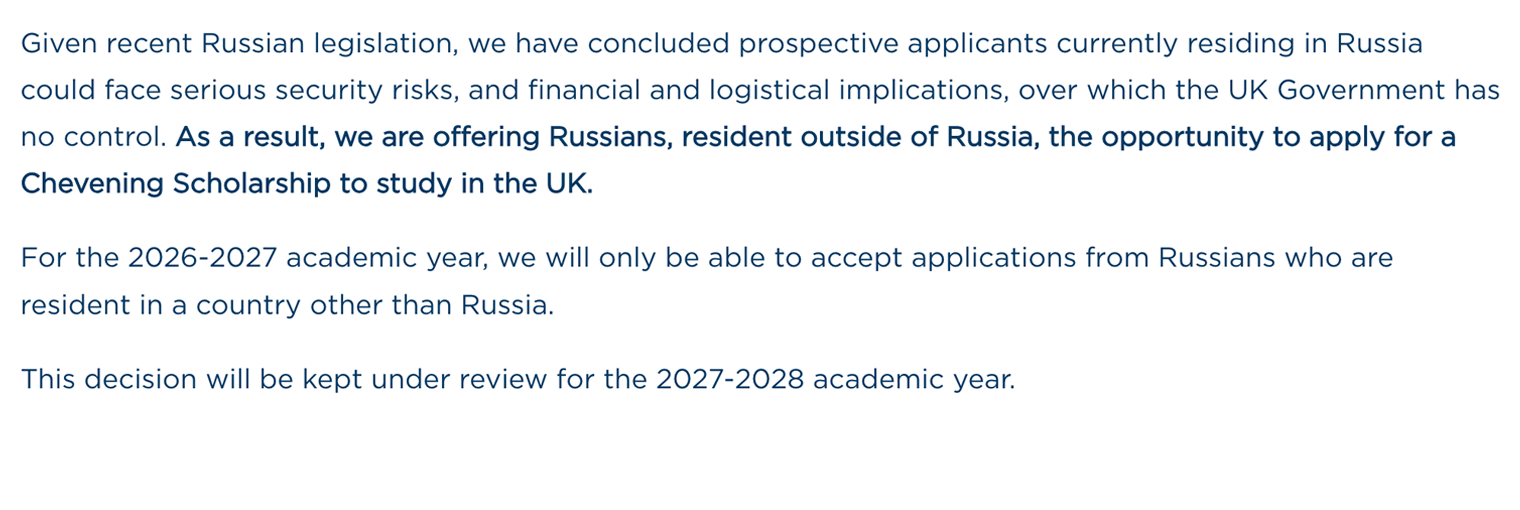 - Сворачивание стипендий для россиян. С 2022 года прекратили набирать россиян на стипендии вроде бельгийской Master Mind, шведской SISGP, норвежской Norwegian-Russian Scholarship и британской Chevening. Они были очень популярны среди россиян, поэтому их уход отчасти демотивировал ребят поступать за границу.