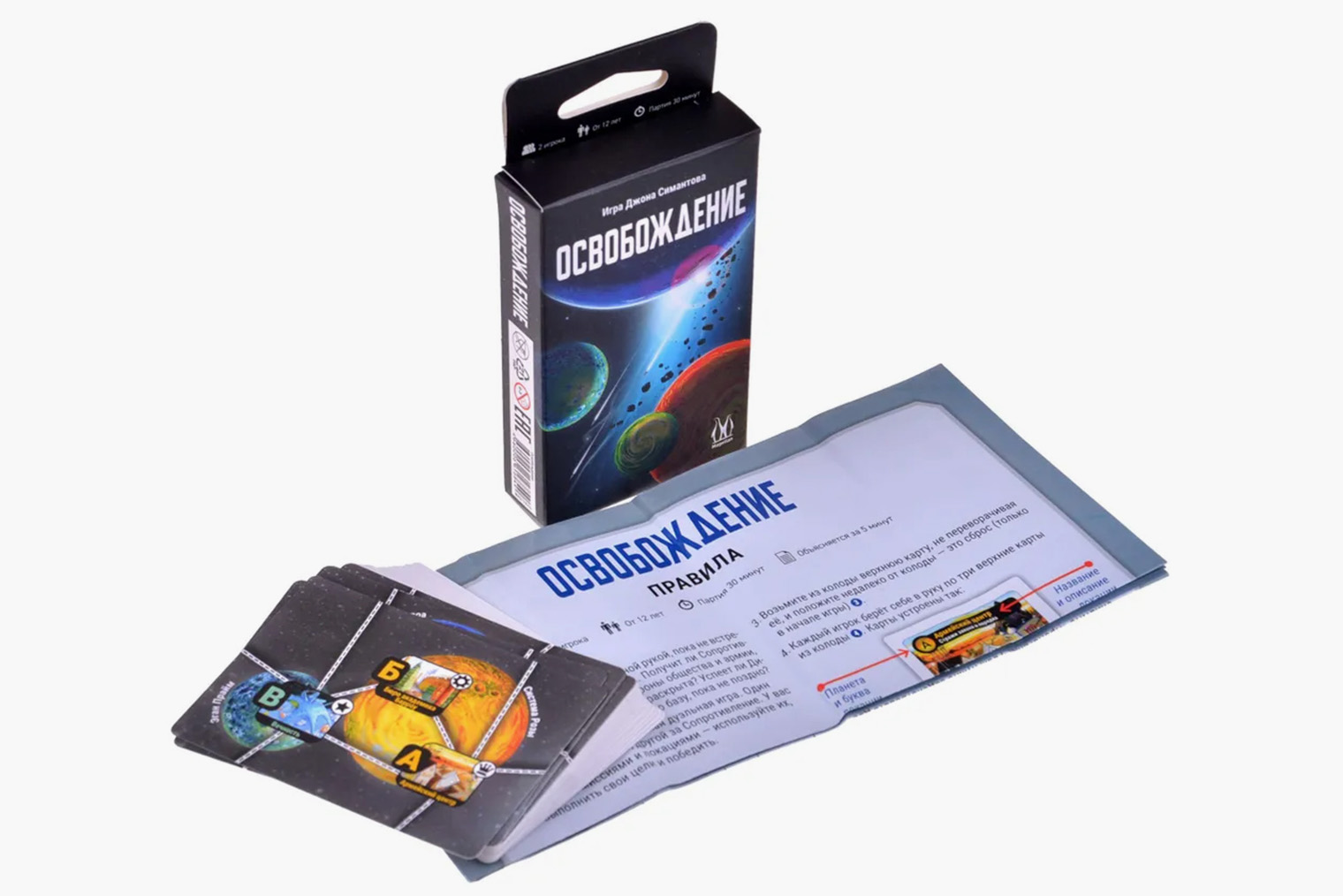Чем увлекает. В коробке «Освобождения» всего 23 карты, но их хватает, чтобы передать грандиозность столкновения. У каждой из сторон свои условия победы, так что у участников этой битвы умов есть пространство для тактических и стратегических решений. После поражения порой оказывается, что ты упустил базу повстанцев, которая всю игру находилась в соседней локации.