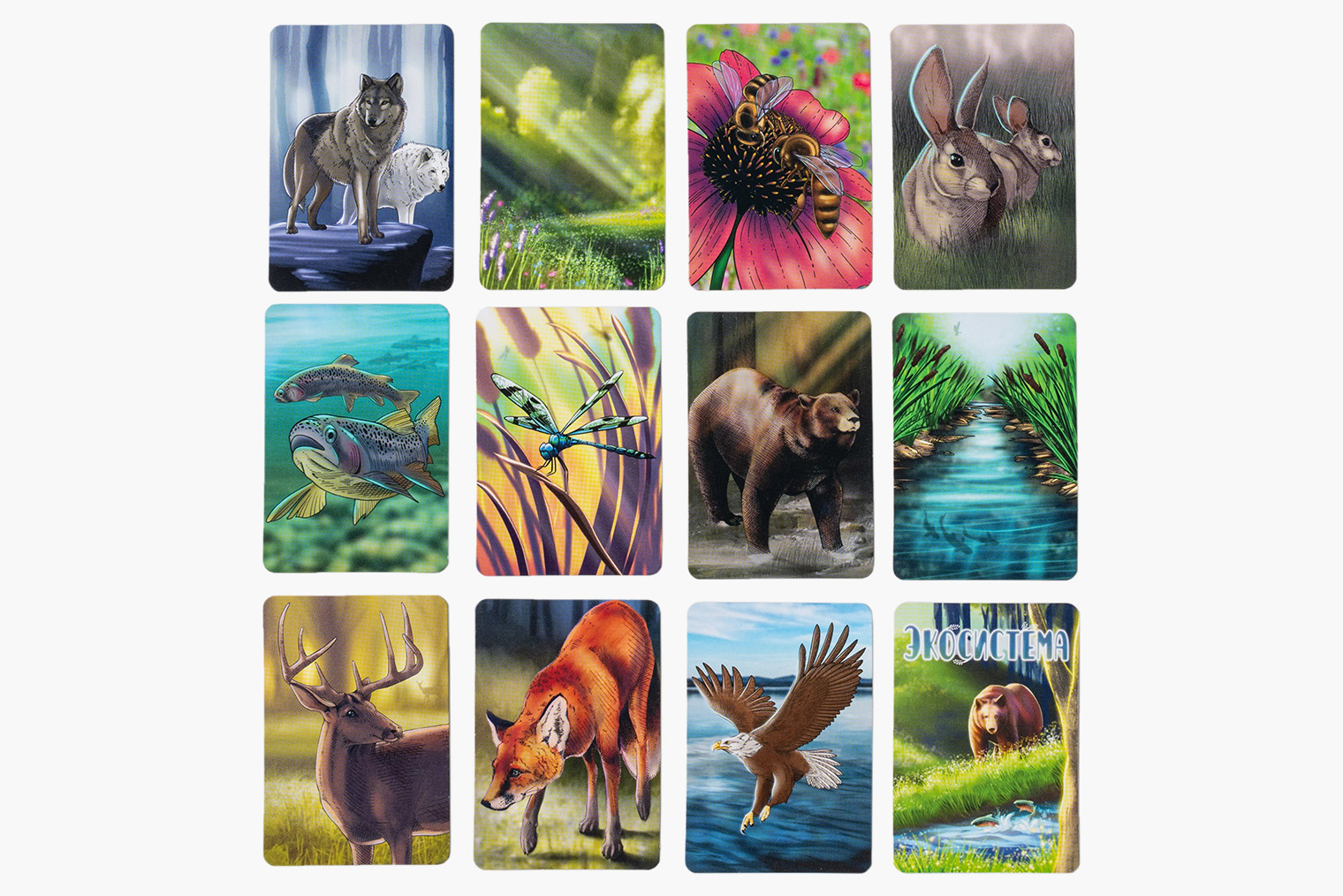 Как играть. У вас на руке десять карт с животными и типами местности заповедника. Медведи, олени, стрекозы, форель и пчелы — чего только не понадобится для сбалансированной экосистемы.