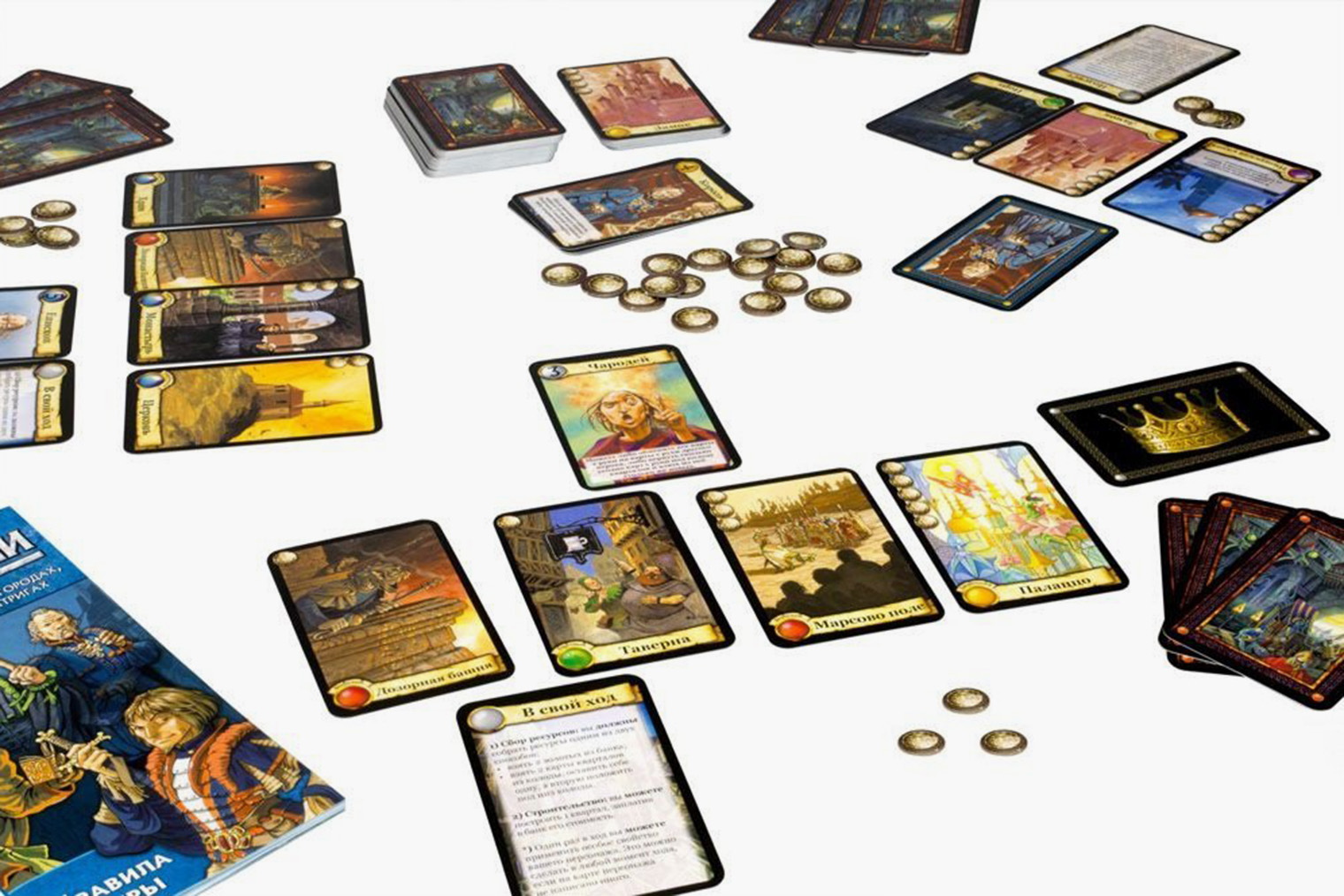 Как играть. Правителя средневекового государства убивают, а значит, скоро коронуют нового. По улицам разносится слух о дерзком ограблении лавки самого богатого купца в городе. А кондотьер одного из вельмож готовит нападение на имение знатного гражданина — видимо, он чем-то обидел нанимателя военного.