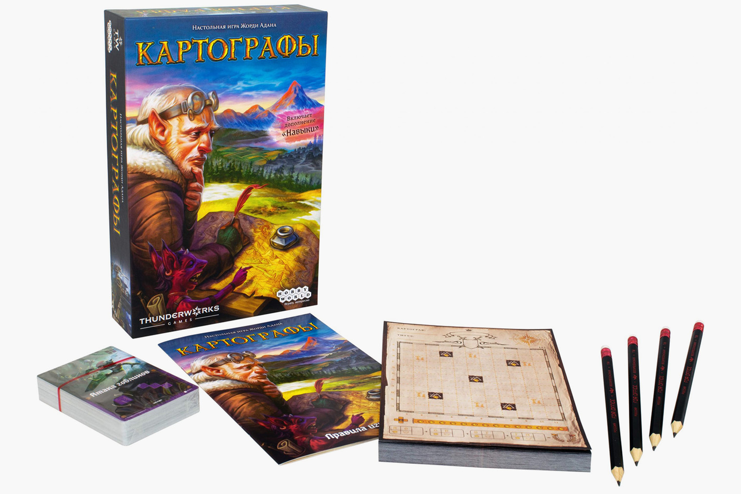 Чем увлекает. В «Картографов» можно играть большим составом, причем это почти не увеличивает время партии. Забеги по вольным землям всегда разнообразны, а сам процесс почти что медитативен: вы закрашиваете клетки на специальном листе, оформленном под старинный свиток. Можно делать это простыми карандашами, которые идут в комплекте, или же ручками и фломастерами, чтобы в конце получилась почти что настоящая карта.
