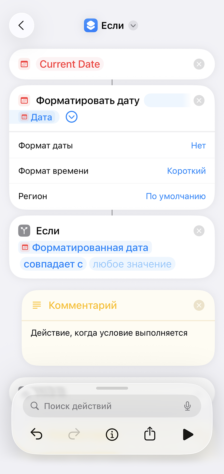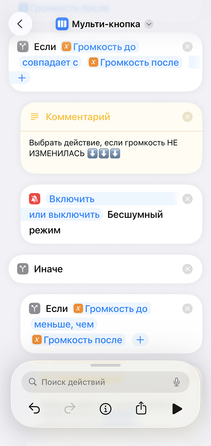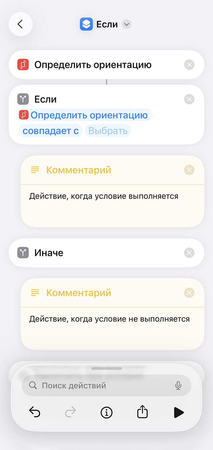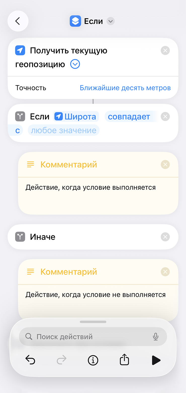 Нужно выбрать блок «Если», выбрать одно из указанных выше условий и действий для него. Затем второе условие и действие и так далее.