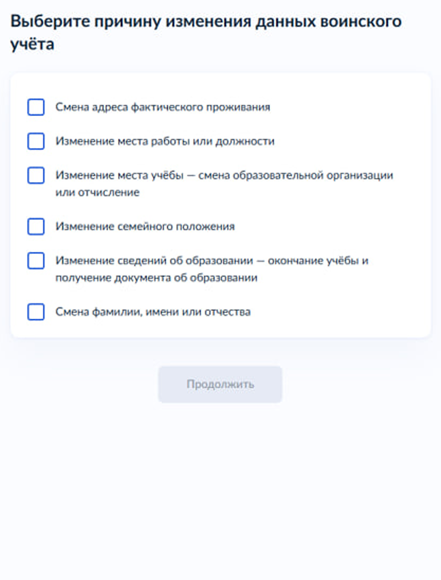 Граждане с 16 до 55 лет, состоящие на воинском учете, обязаны уведомить военкомат, если у них изменится :