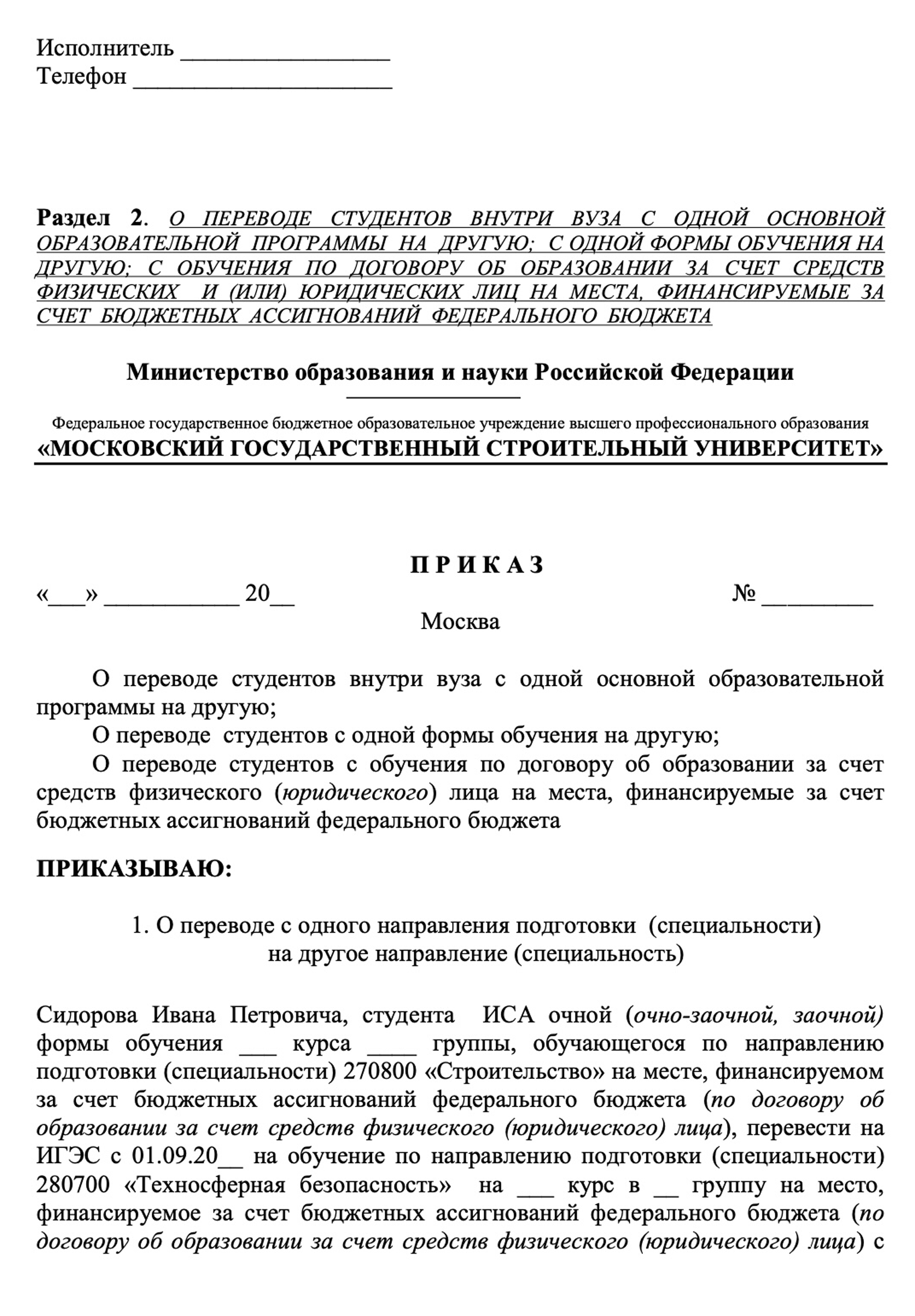 Отчисление из-за перевода