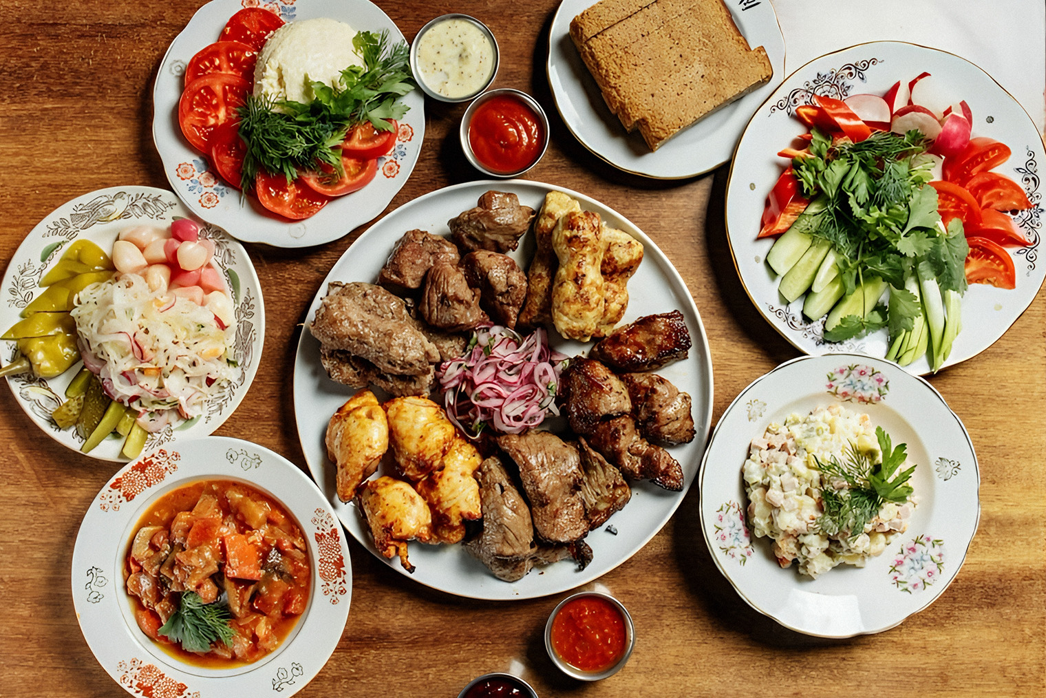 Что предлагают: мясо на углях и соленья