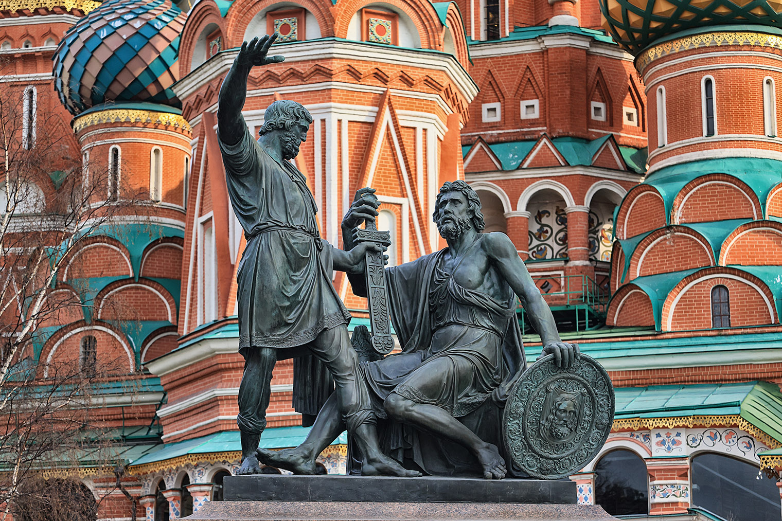 Напротив храма со стороны Красной площади находится памятник Минину и Пожарскому — предводителям народного ополчения 1612 года. Его установили в начале 19 века в честь окончания Смутного времени и несколько раз меняли месторасположение.