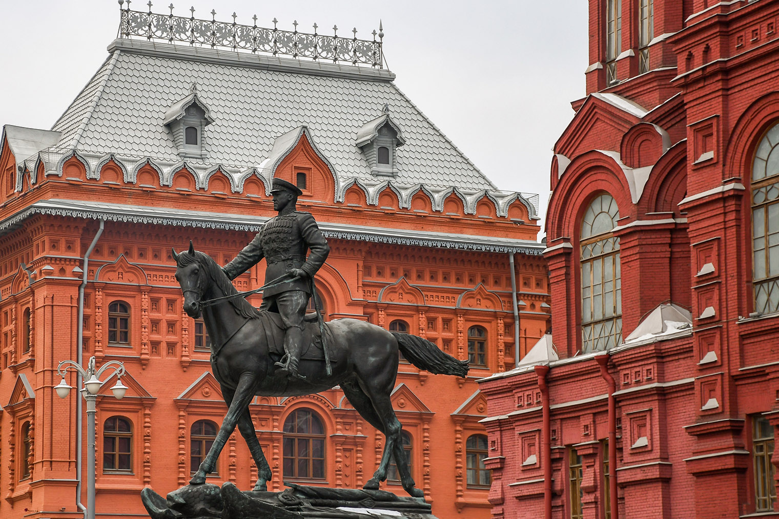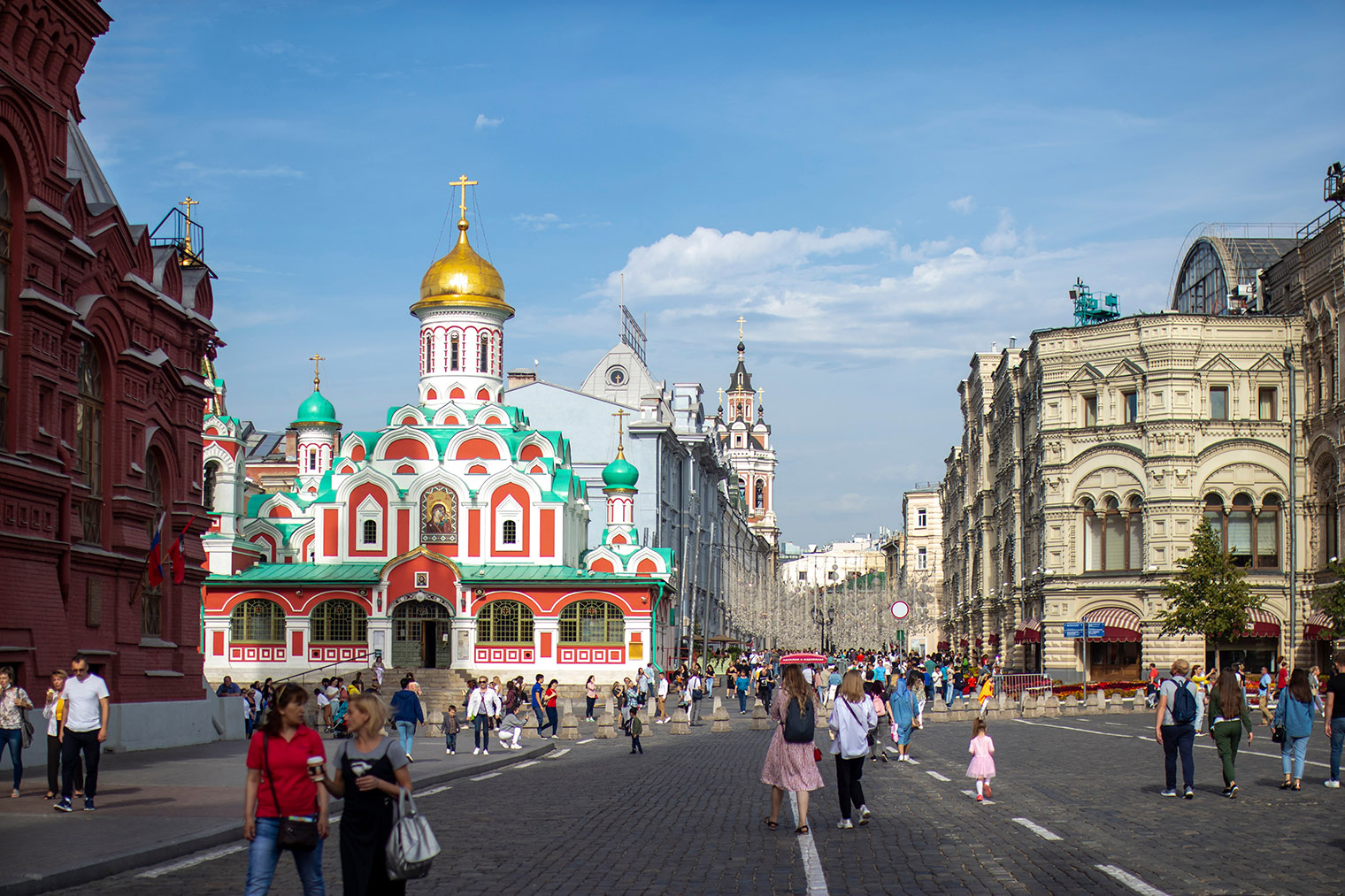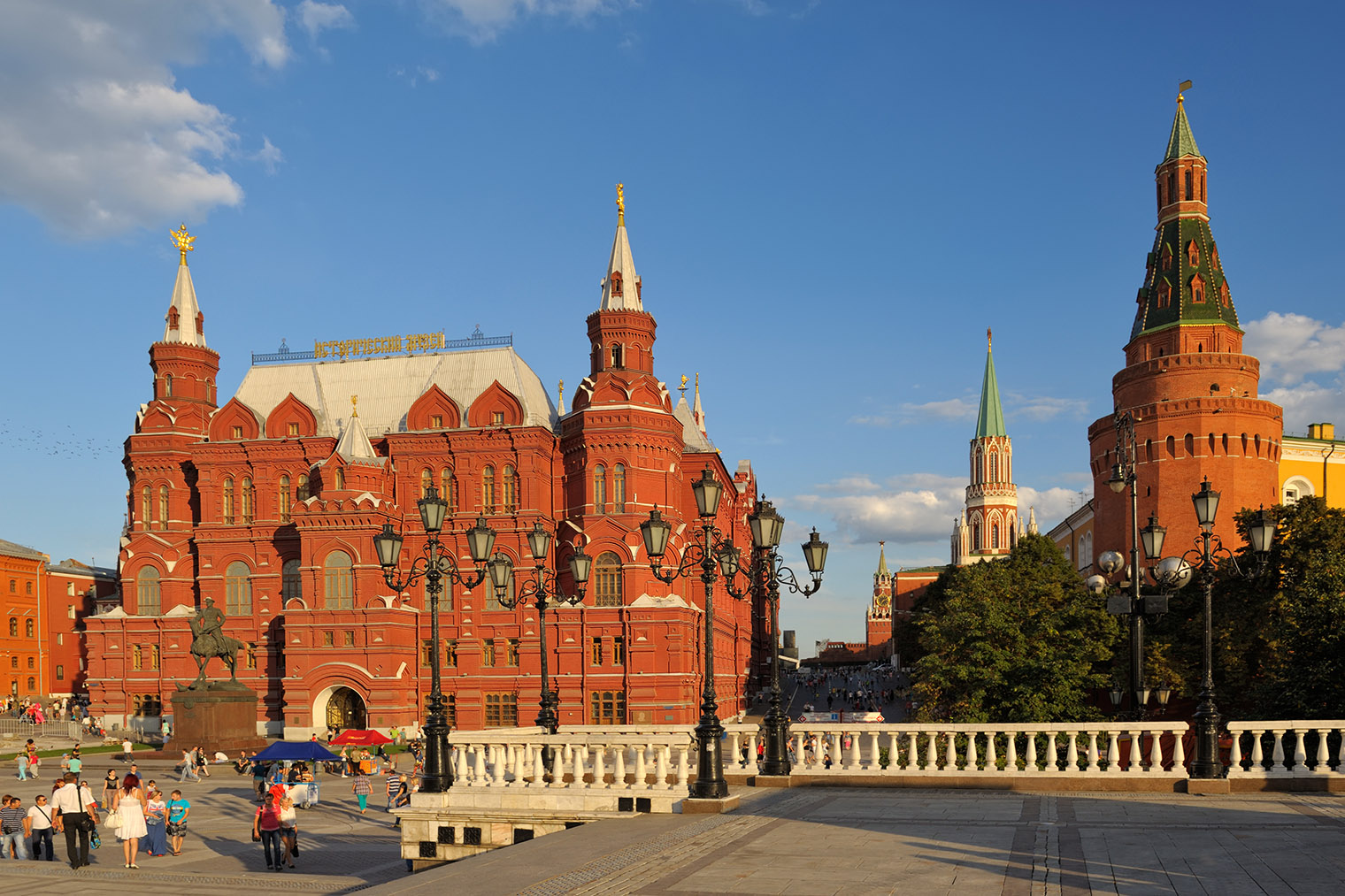 Исторический музей занимает самое высокое и самое красное здание на площади. Его создали по распоряжению Александра Второго, чтобы он «служил наглядной историей главных эпох русского государства». При Александре Третьем экспозиции быстро пополнялись благодаря пожертвованиям частных коллекционеров, а после революции — за счет национализированных богатств закрытых храмов и музеев.