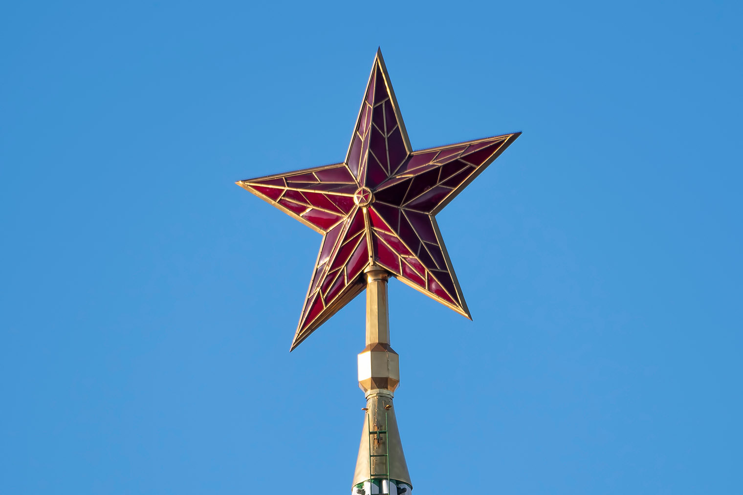 Башенный шпиль в конце 16 века украшал двуглавый орел — символ государственности и царской власти. В 1935 году его заменили на пятиконечную звезду. Внутри нее круглосуточно горит лампа мощностью 5000 ватт. Интересно прийти к Спасской башне в ветреную погоду: можно увидеть, что звезда вращается на ветру, как флюгер.