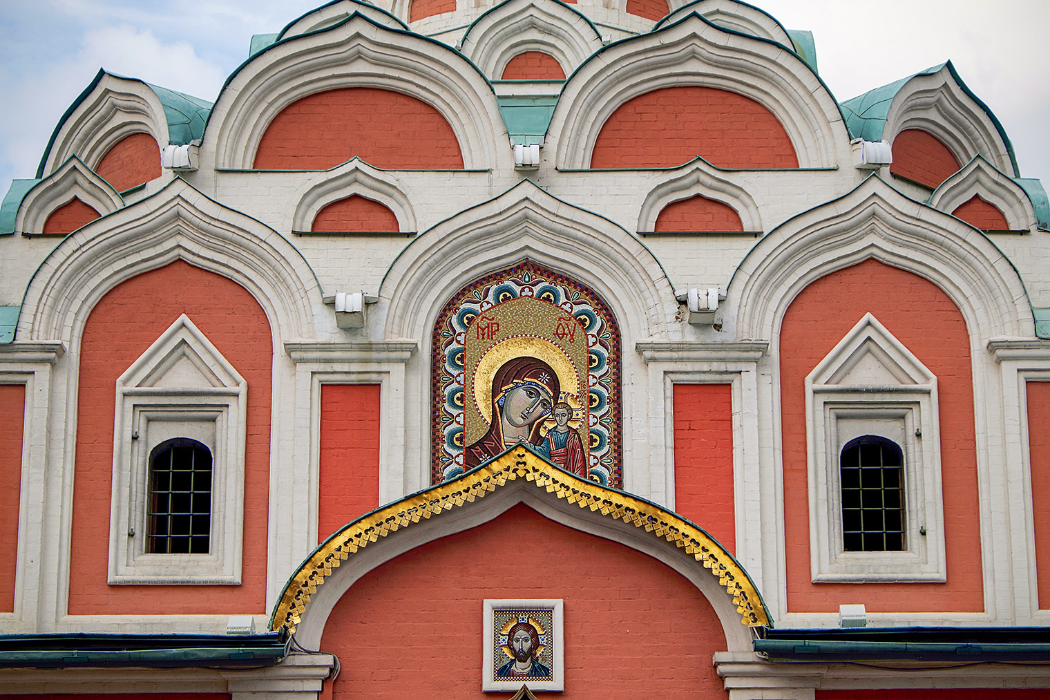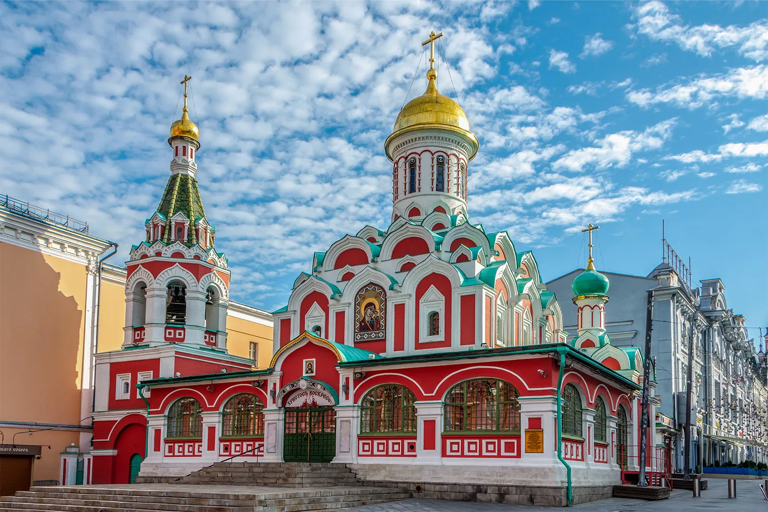 Казанский собор на углу Красной площади оформили в стиле здания исторического музея, но это новодел. Оригинальный собор построили из дерева в начале 17 века. По одной из версий, его возвели на деньги Дмитрия Пожарского, но официальная история это не подтверждает. Храм неоднократно достраивали и реставрировали. В 1936 году его снесли, а в начале 1990-х восстановили.