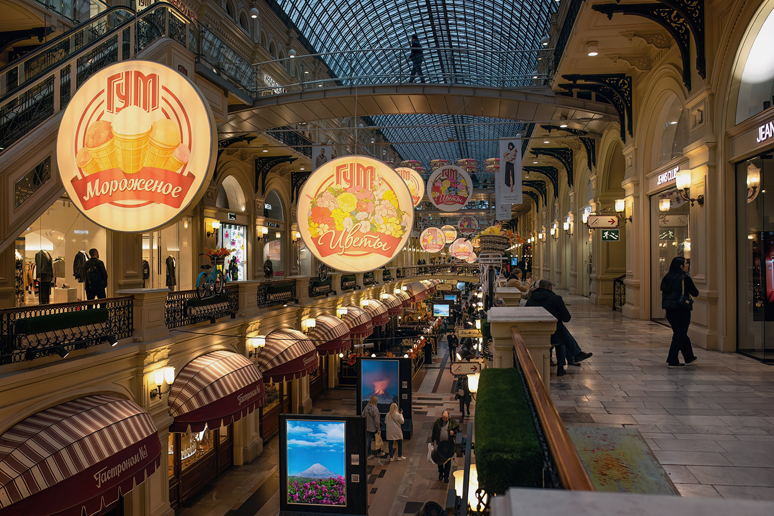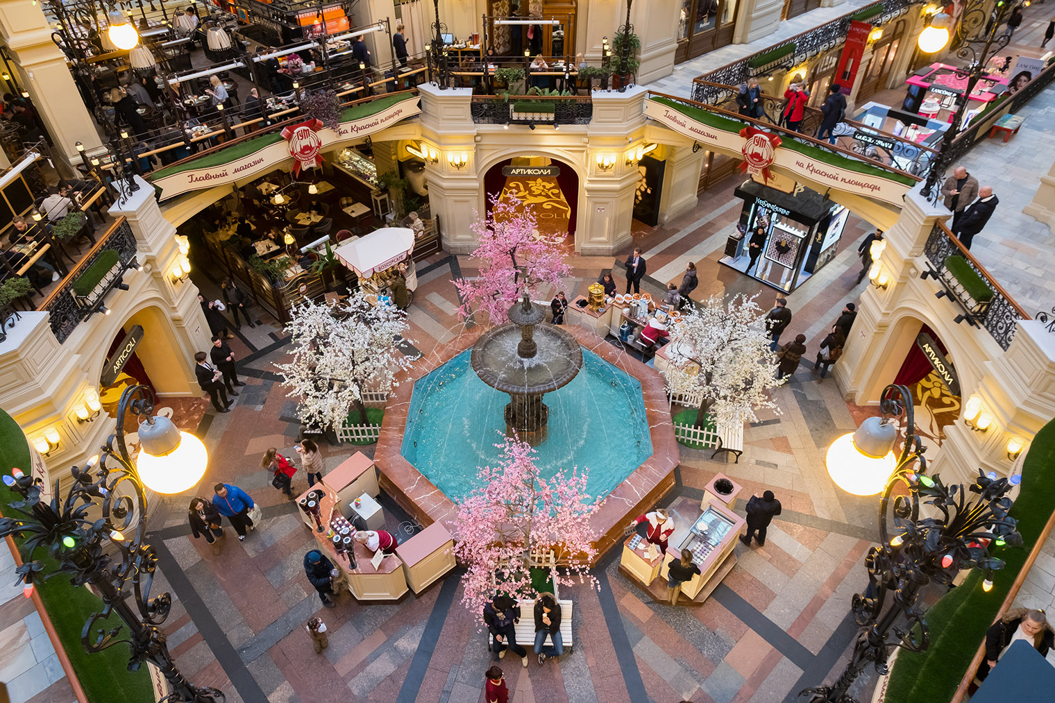 Мои друзья из других стран, которых я приводила в Гум, до визита слышали о нем несправедливо мало. Я рассказывала о ценности центрального фонтана — единственного в Москве, который работает зимой, — о местном кинотеатре с лепниной и бархатными портьерами, о гастрономе. Старалась, чтобы они поняли: Гум — это не просто ряды с дорогими магазинами, а исторический символ московской культуры потребления.