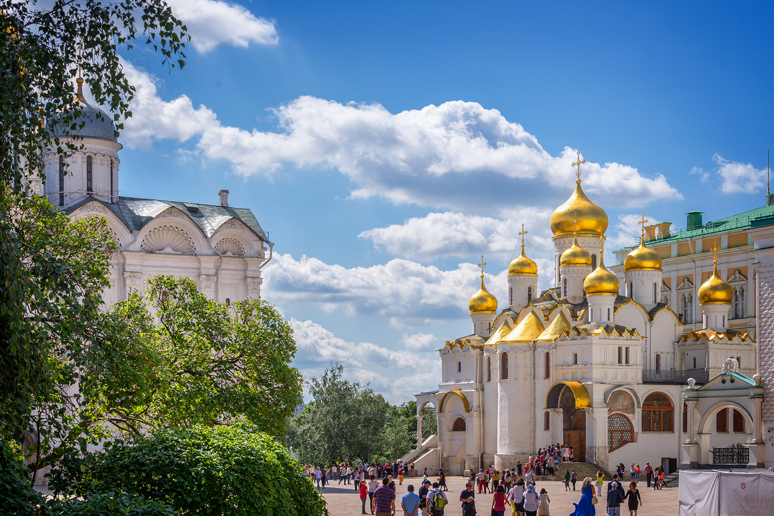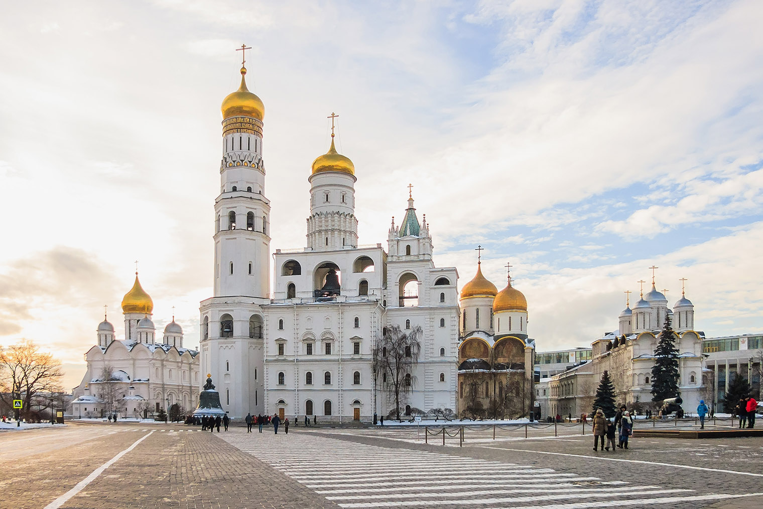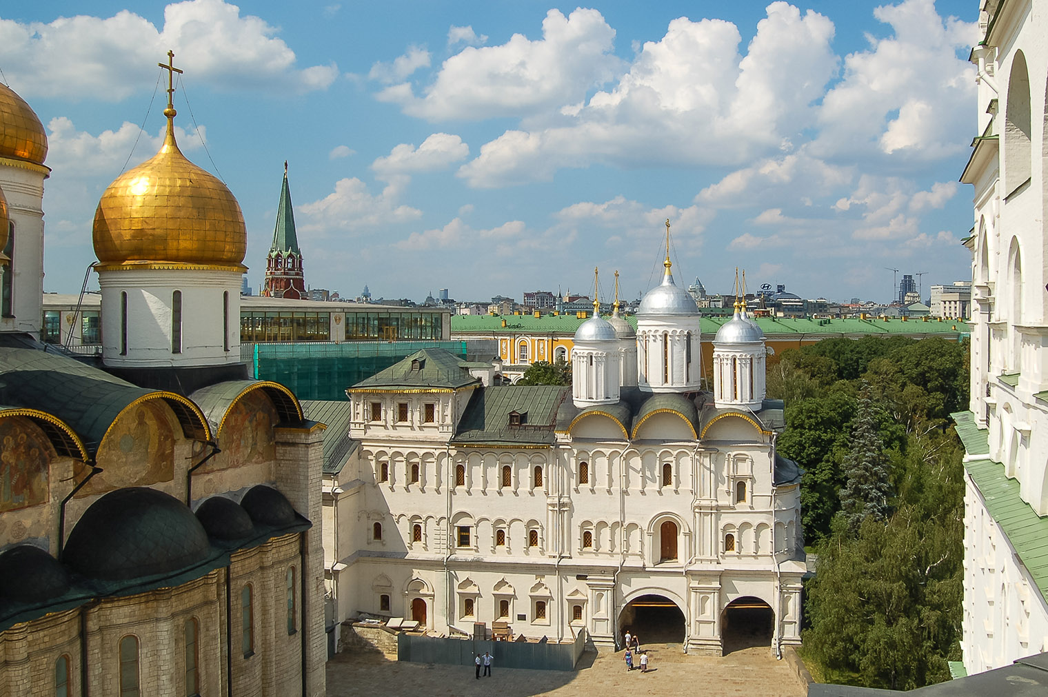 Посещение площади платное, поэтому здесь мало людей. По единому билету можно попасть в Успенский, Архангельский и Благовещенский соборы с экспозициями, церковь Ризоположения и Патриаршие палаты. Стоит взять аудиогид: говорят, рассказ довольно интересный.