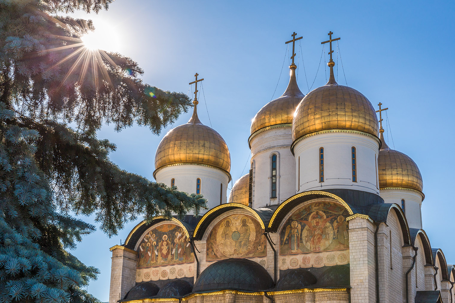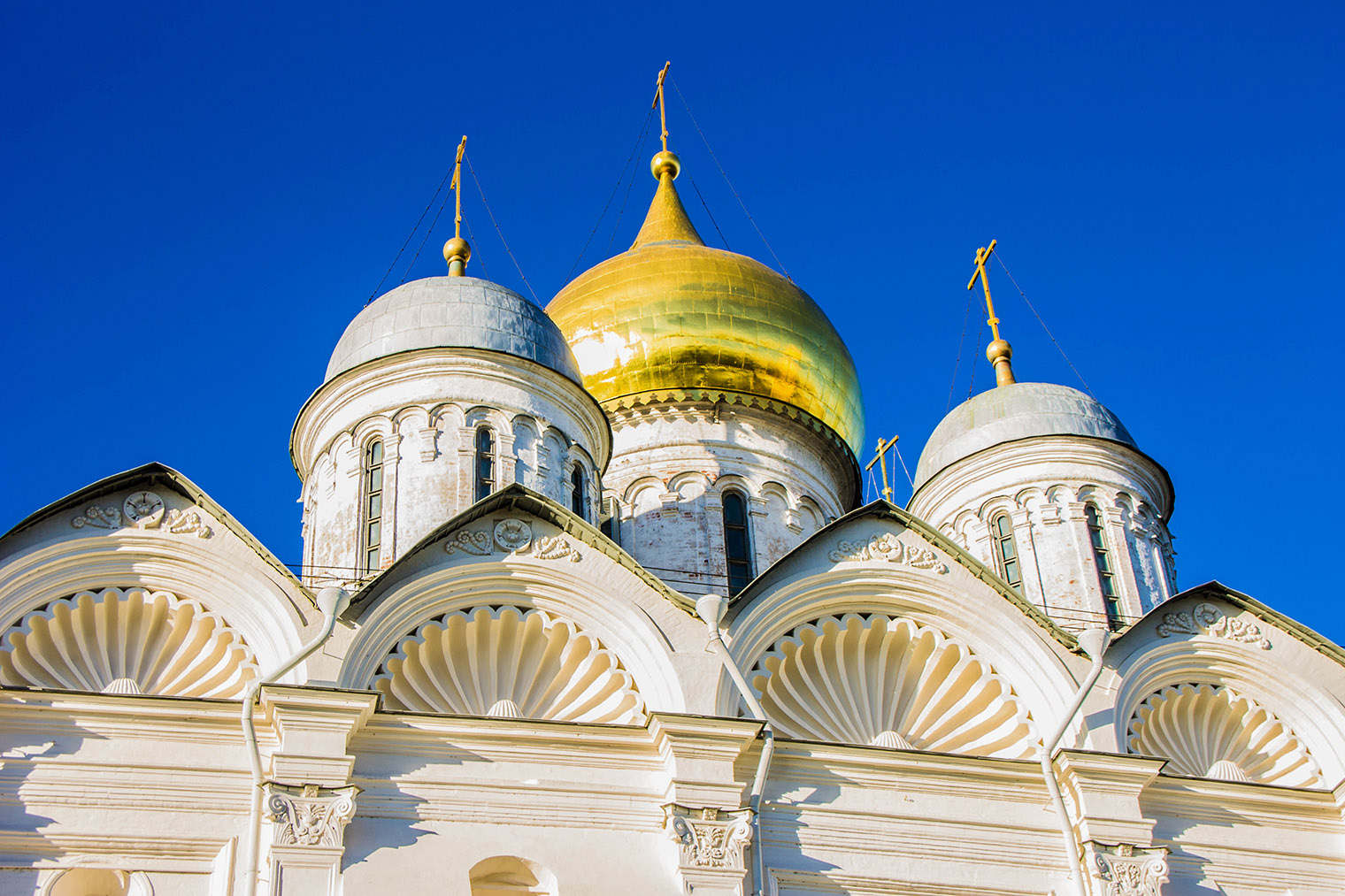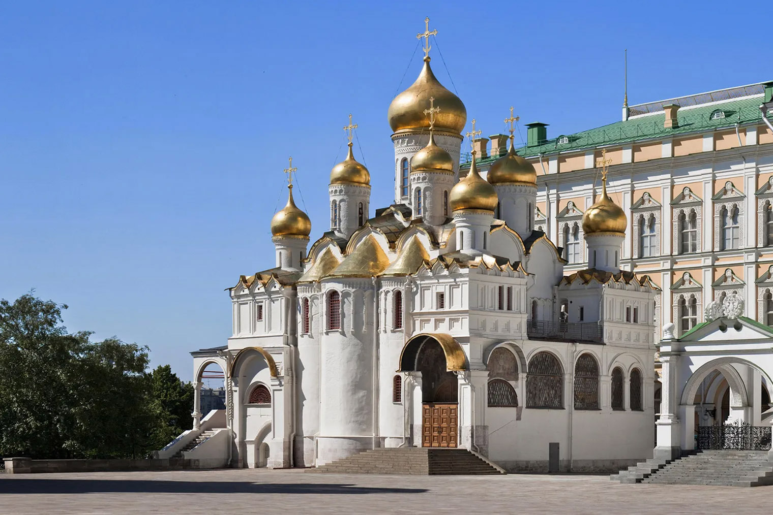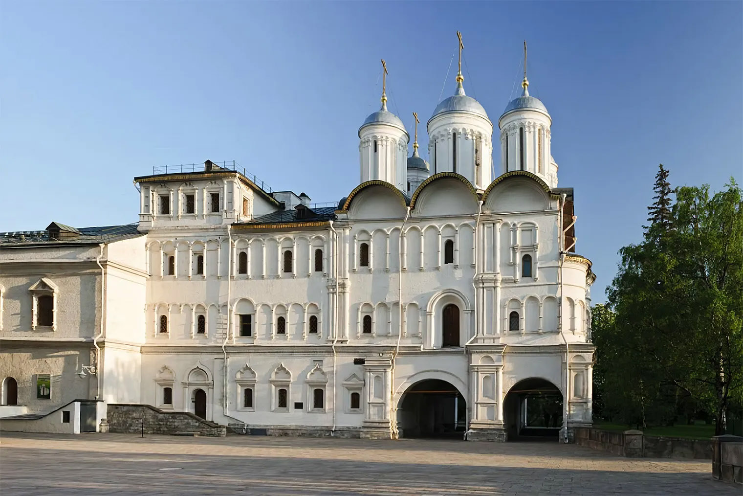 На мой взгляд, это самый камерный, но при этом наиболее нарядный собор Кремля: у него белокаменные резные порталы, золоченая крыша и аккуратные купола. Строительство храма закончили в конце 15 века, оно заняло по тем временам немного — всего пять лет.