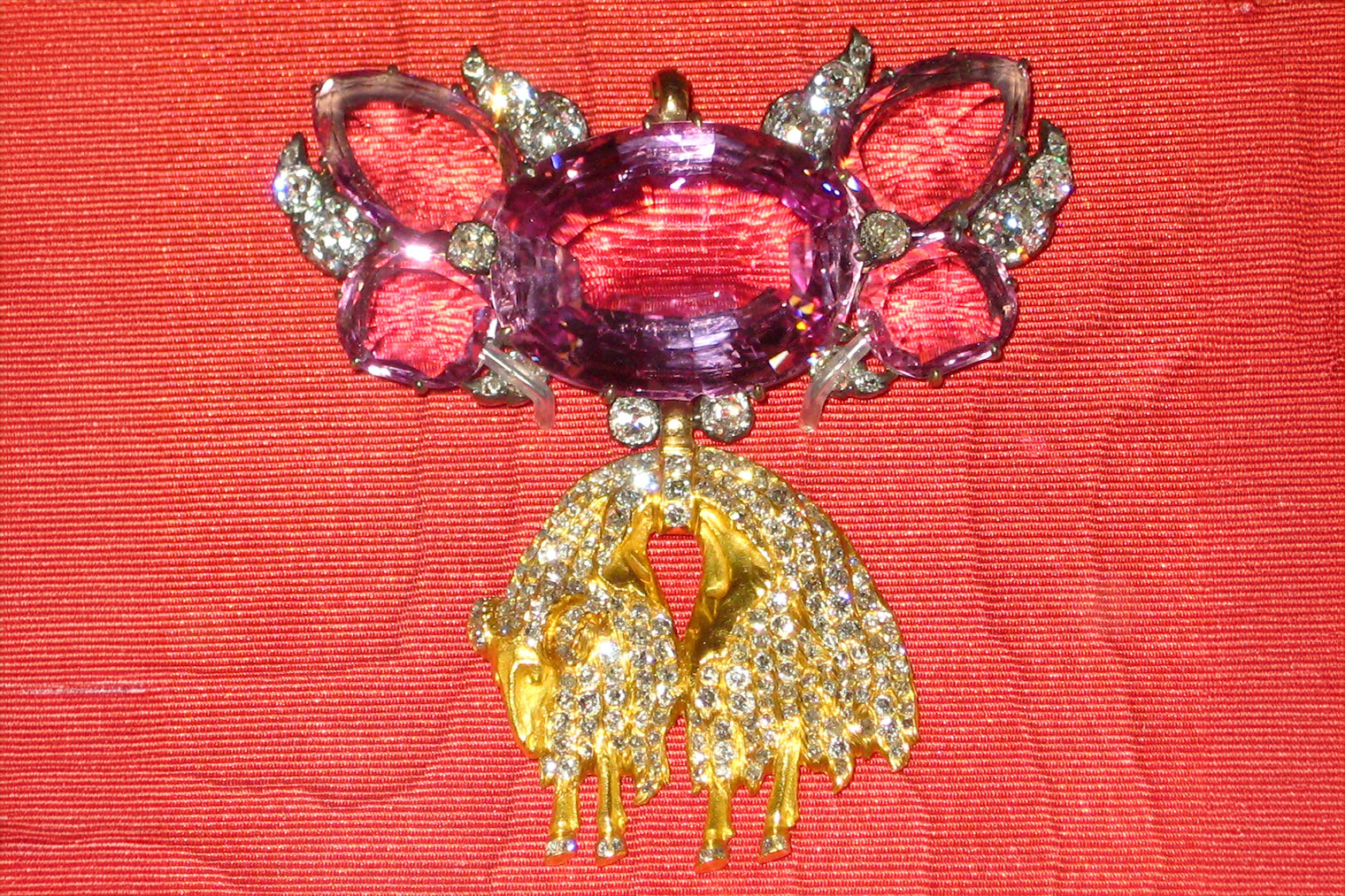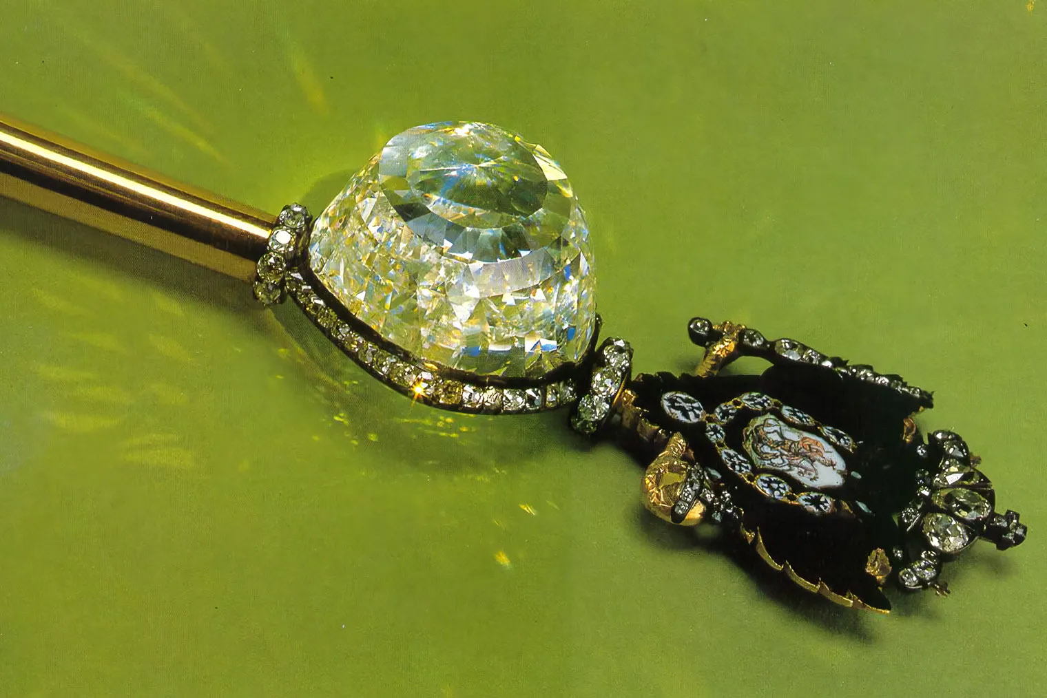 Среди экспонатов — алмаз «Орлов» массой почти 200 карат в скипетре царицы Екатерины Второй. Еще есть алмаз «Шах» из персидской короны. Его Николаю Первому прислали в качестве извинений за убийство в Тегеране российского посла и писателя Александра Грибоедова.