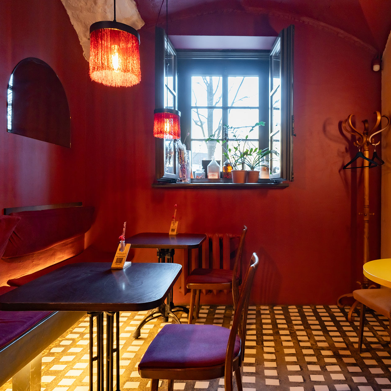 Как выглядит. Камерный и лаконичный индийский спот в «Бутылке» с обволакивающей атмосферой под красными бархатными абажурами.