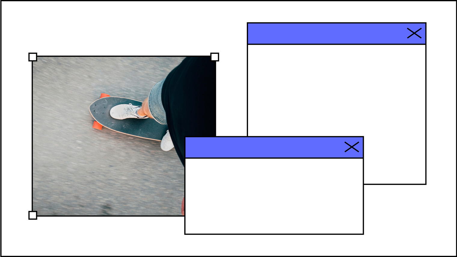 Крупные цветовые блоки подойдут и для текста, и для фото — добавьте свое фото на слайд и отправьте на задний план. Будет красивая пиксельная рамка.