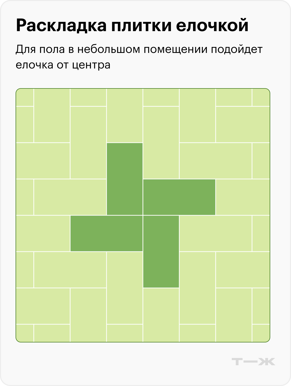Но для бригады такой узор неудобен — придется замерять середину плитки, потому что если делать на глаз, к концу ряда середина уже может съехать.