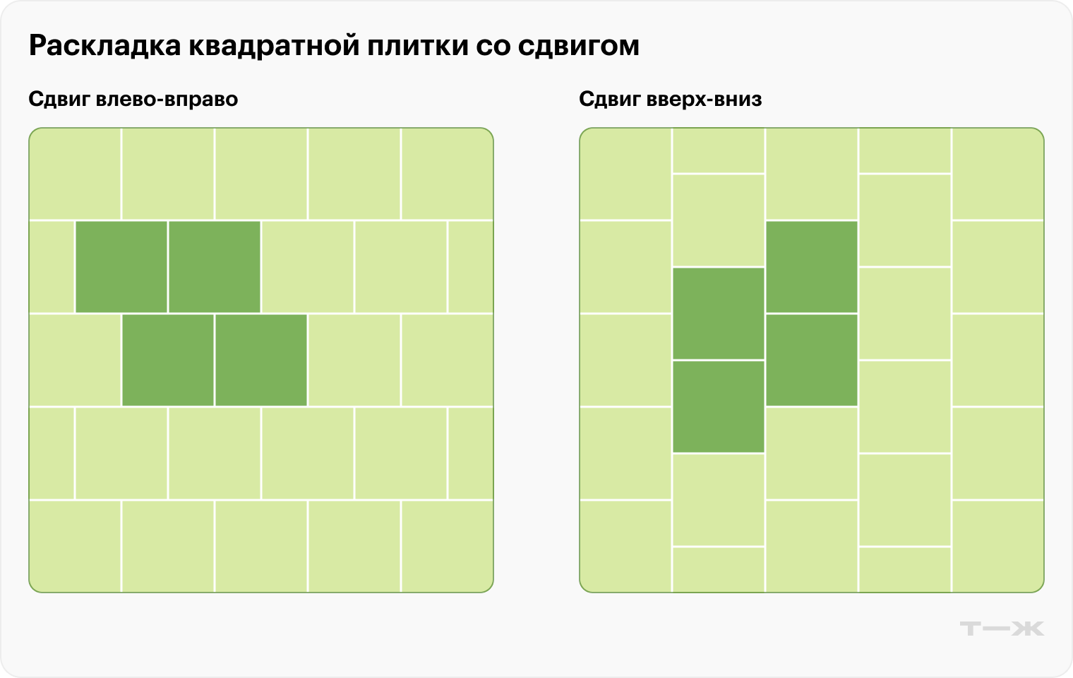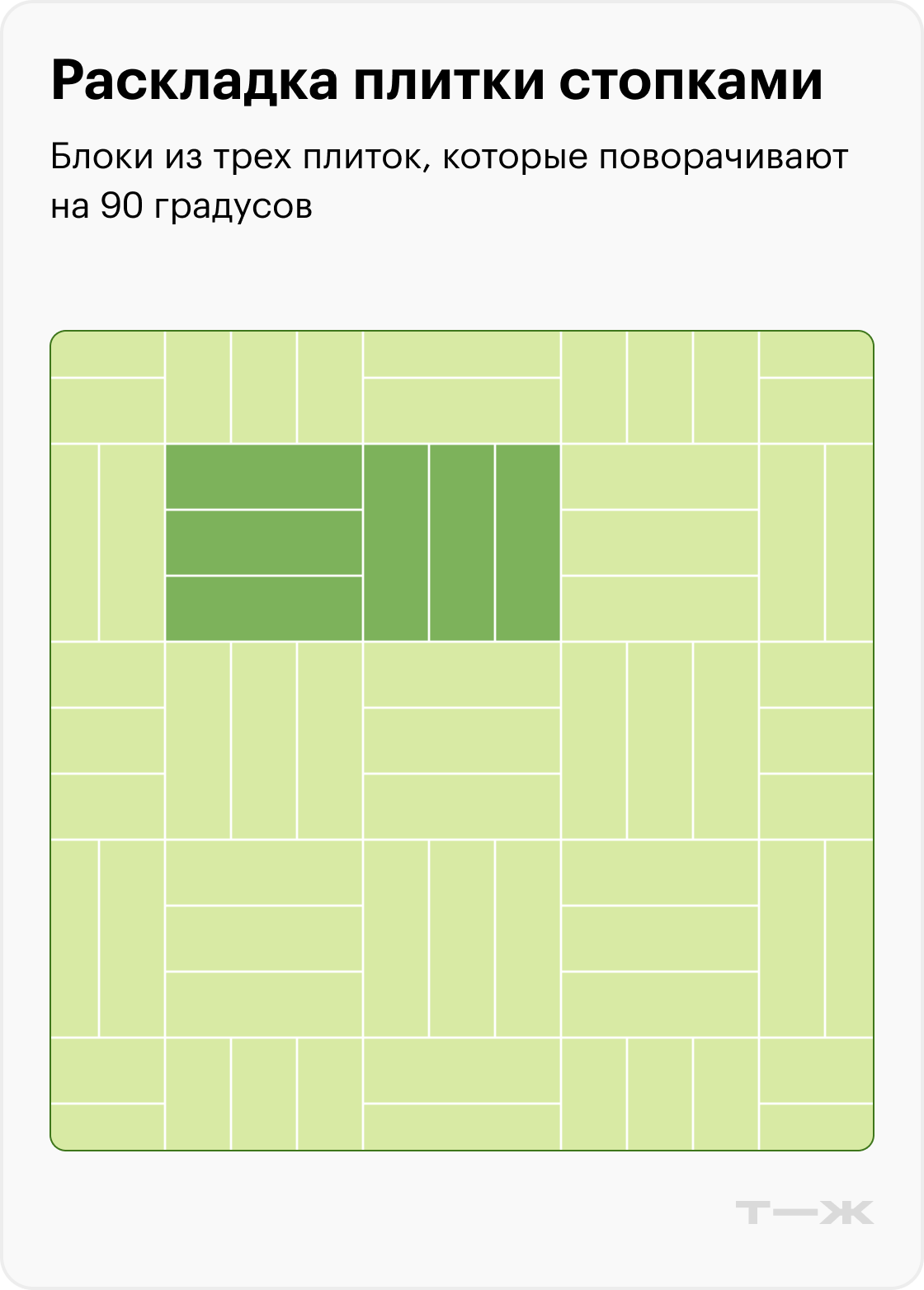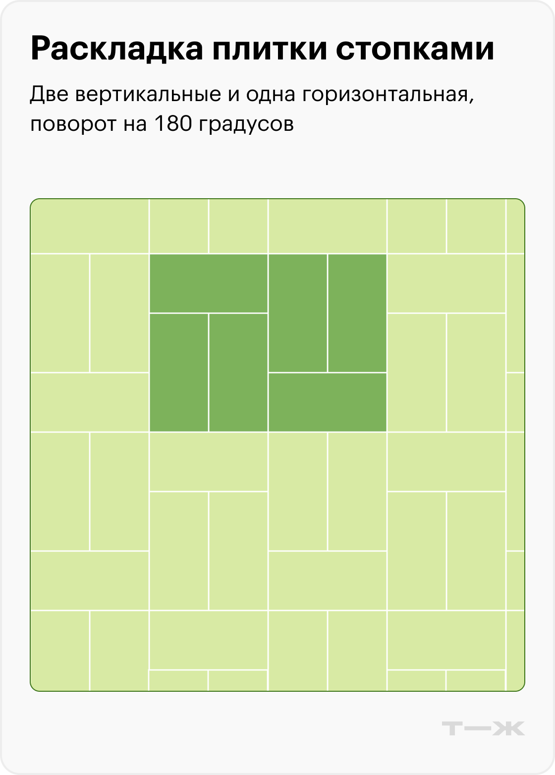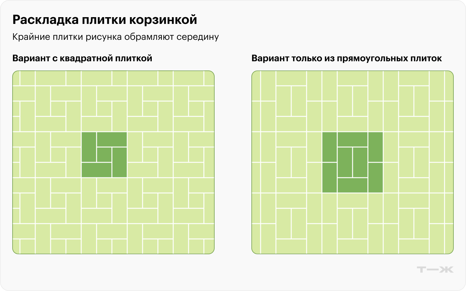 На английском такая раскладка называется basket — корзинка: крайние плитки рисунка обрамляют середину.