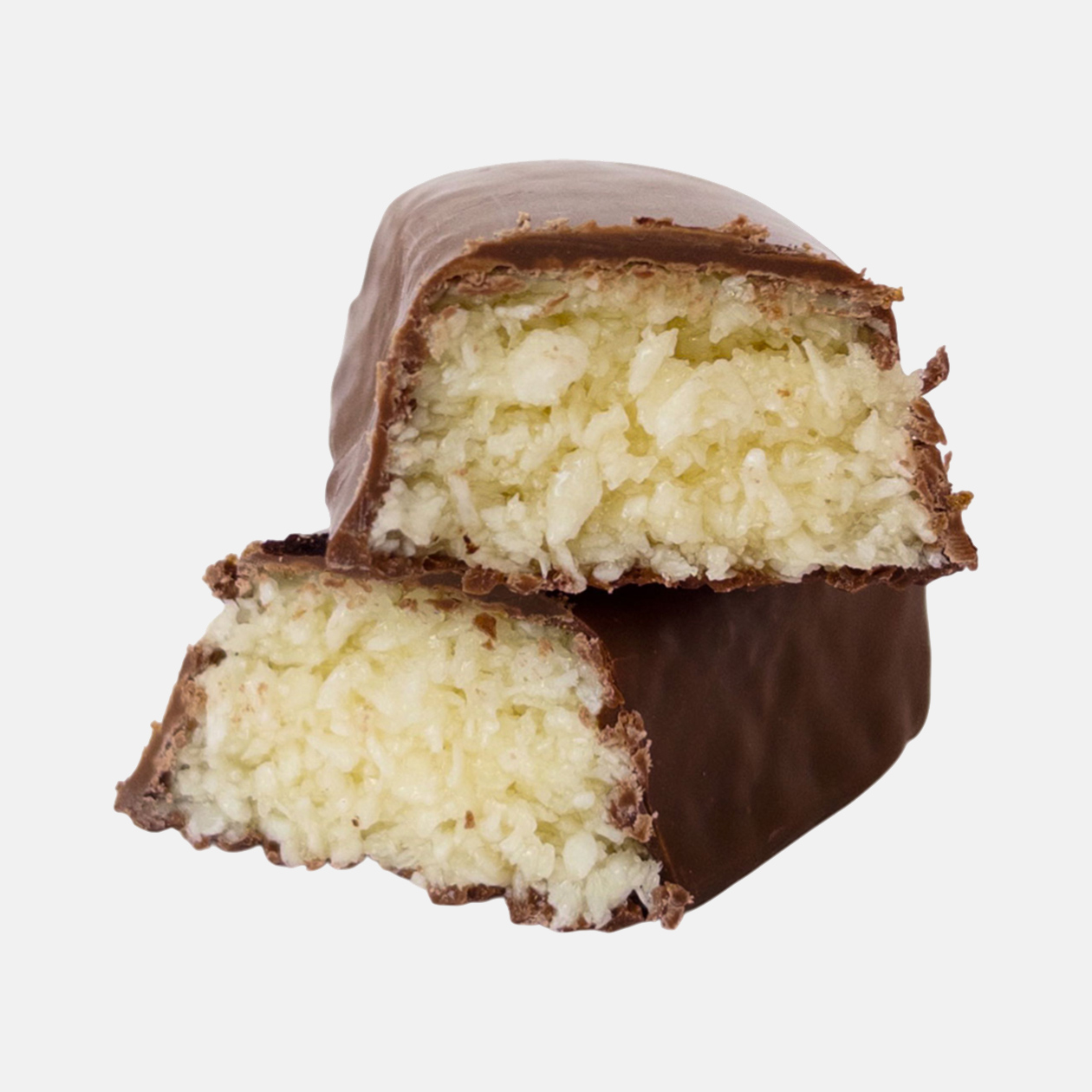 Запах и глазурь. Напоминает «Баунти»: тонкий слой молочного шоколада снаружи и плотная кокосовая паста с характерным запахом внутри.