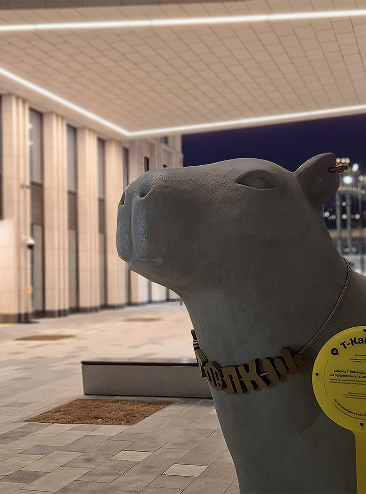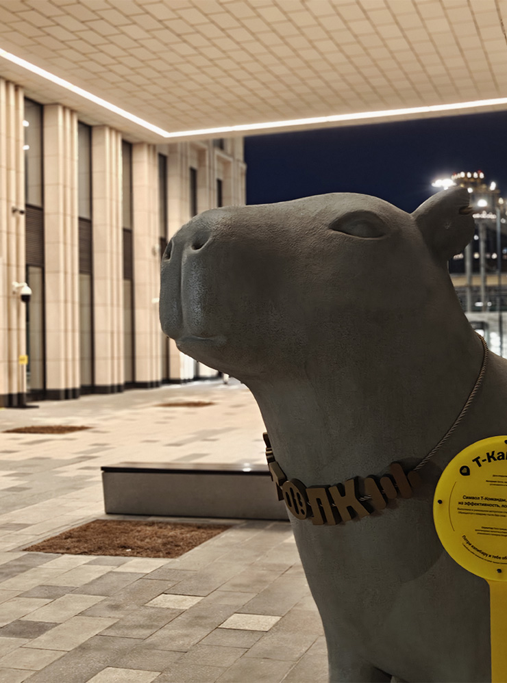 На портрете Т-Капибары Samsung справился лучше, пусть и не идеально. Текстура на носу статуи более выраженная, текст на табличке проще разобрать, а серьга в ухе не растворилась в блюре, как на снимке Realme.