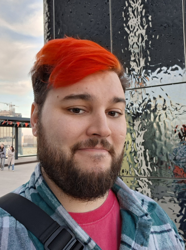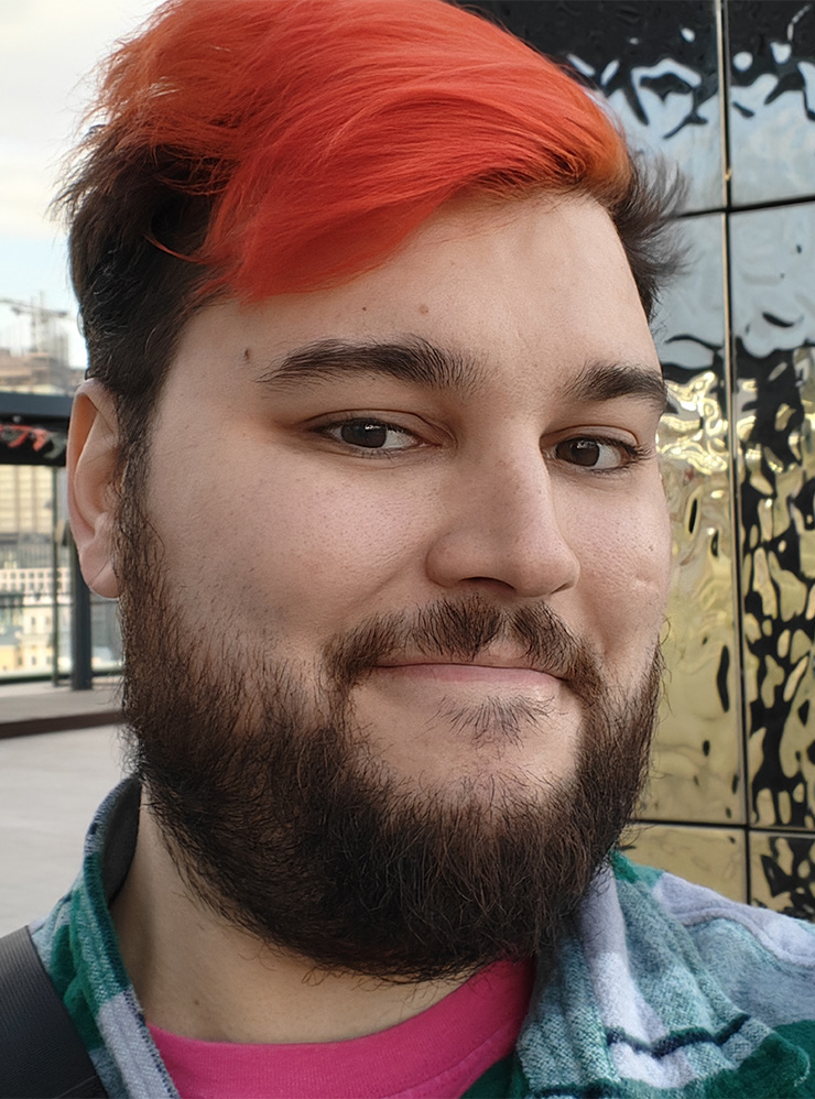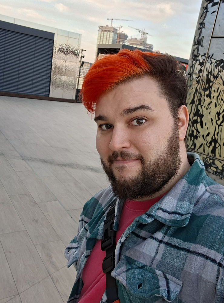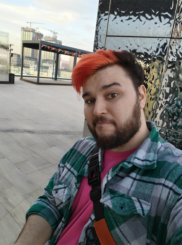 Samsung такого выбора не дает — можно снимать либо с цифровым зумом 2×, теряя в качестве, либо без зума, но так герой кадра теряется в лишних деталях окружения, а пропорции лица и тела искажаются, визуально накидывая человеку лишние 10—20 кг.