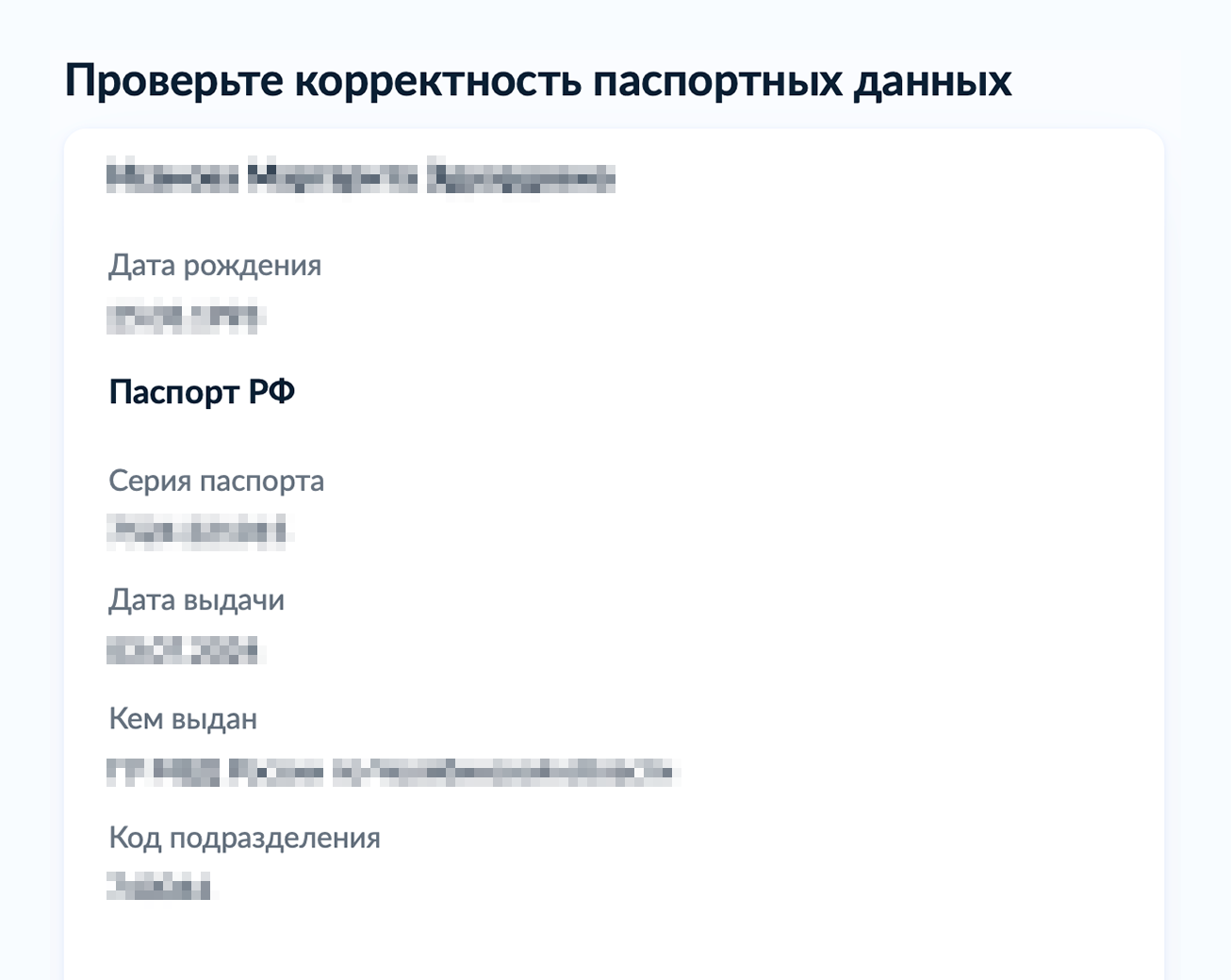 Проверьте актуальность личной информации в разделе «Документы и данные» и исправьте ошибки, если они есть.