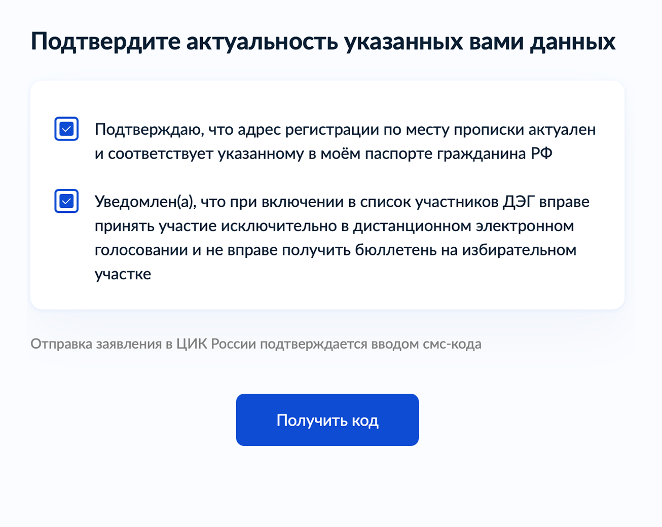 Если ТИК выявит, что у гражданина одновременно два заявления — о выборе участка и ДЭГ, — действительным будет заявление на ДЭГ, а заявление избирателя о включении в список по месту нахождения учитывать не будут.
