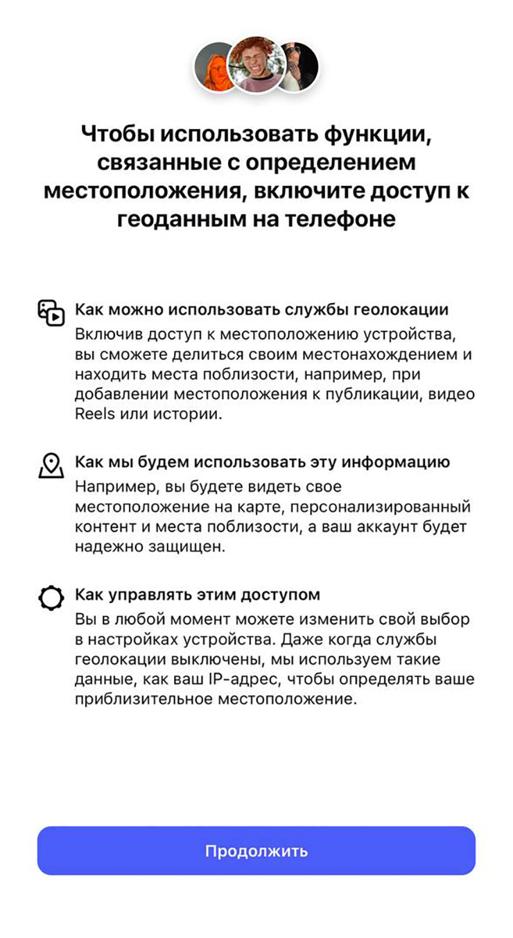 По умолчанию шеринг геолокации отключен. Чтобы ее включить, откройте личные сообщения и в разделе «Заметки» найдите карточку с картой. Нажмите на нее: откроется экран с описанием функции. Выберите «Далее» и укажите, с кем хотите делиться геолокацией: только с близкими друзьями или с взаимными подписчиками.