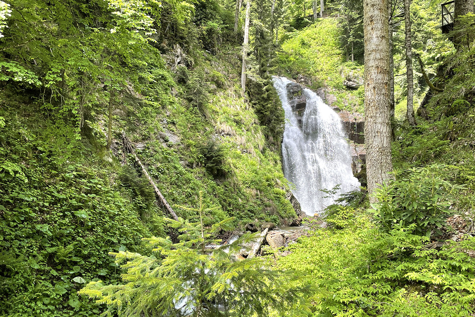 В парке — семь водопадов и два пеших маршрута. Мы прошли с детьми самый простой и короткий, но даже он показался нам довольно сложным. Тяжело не только подниматься в гору, но и спускаться по скользким камням и глине.