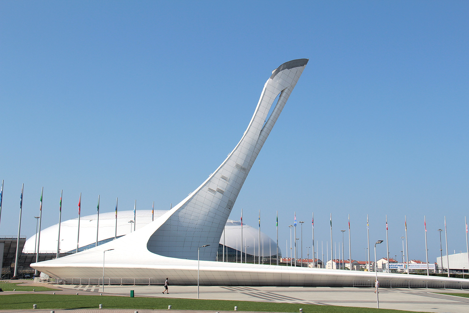 В Олимпийском парке смотрят на спортивные объекты, которые остались от Олимпиады-2014, и наблюдают шоу поющих фонтанов.