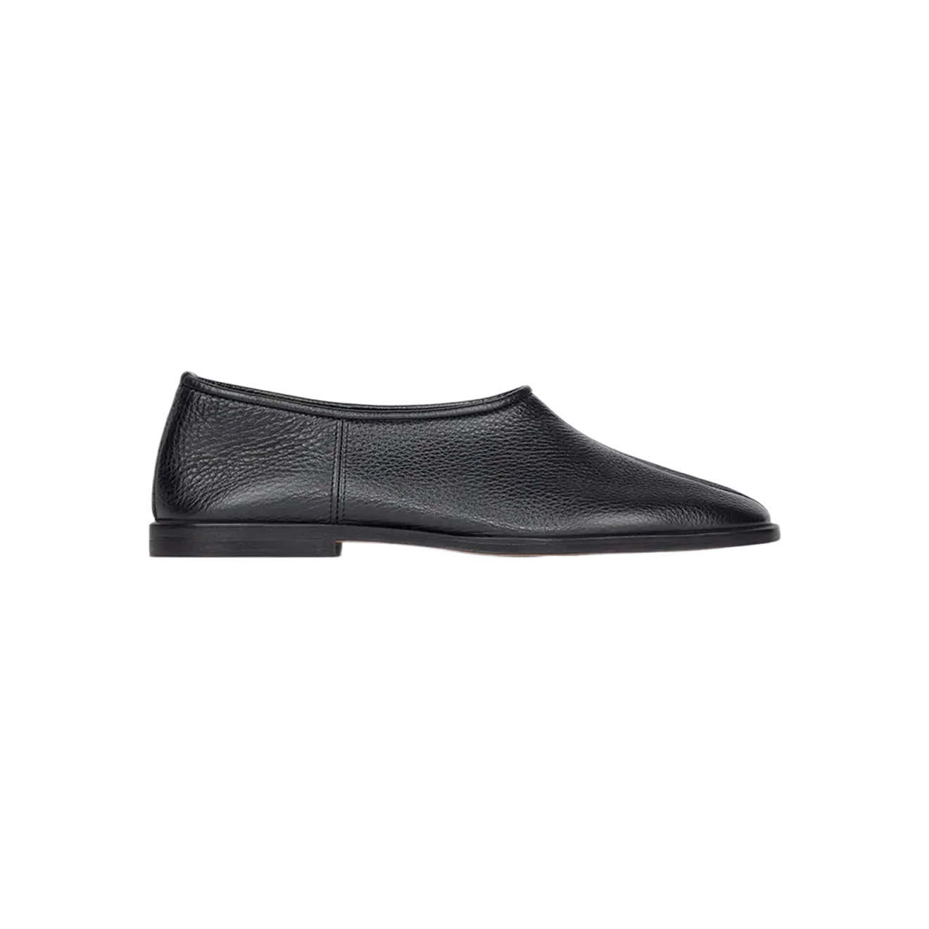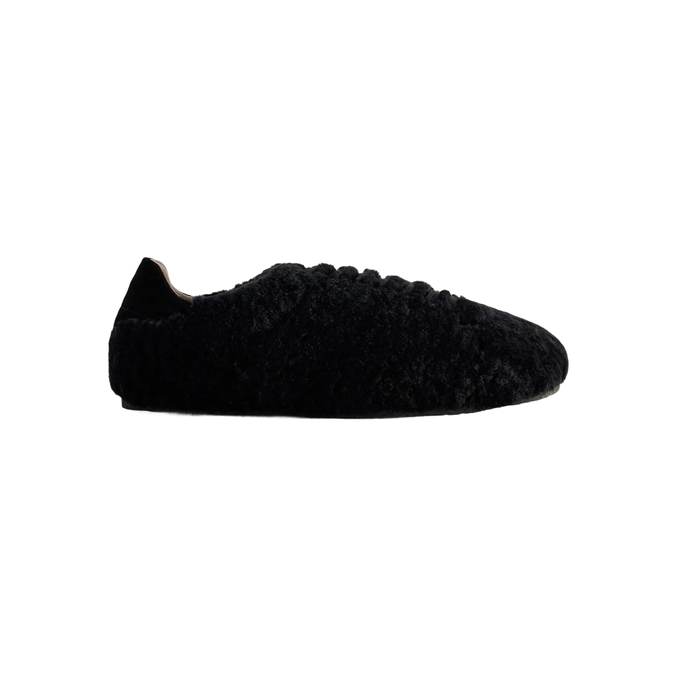 Если вы любите обувь не как у всех, Lalou выпускают и ее. Среди беспроигрышных лоферов и слингбэков в ассортименте появляются меховые сабо и угги.