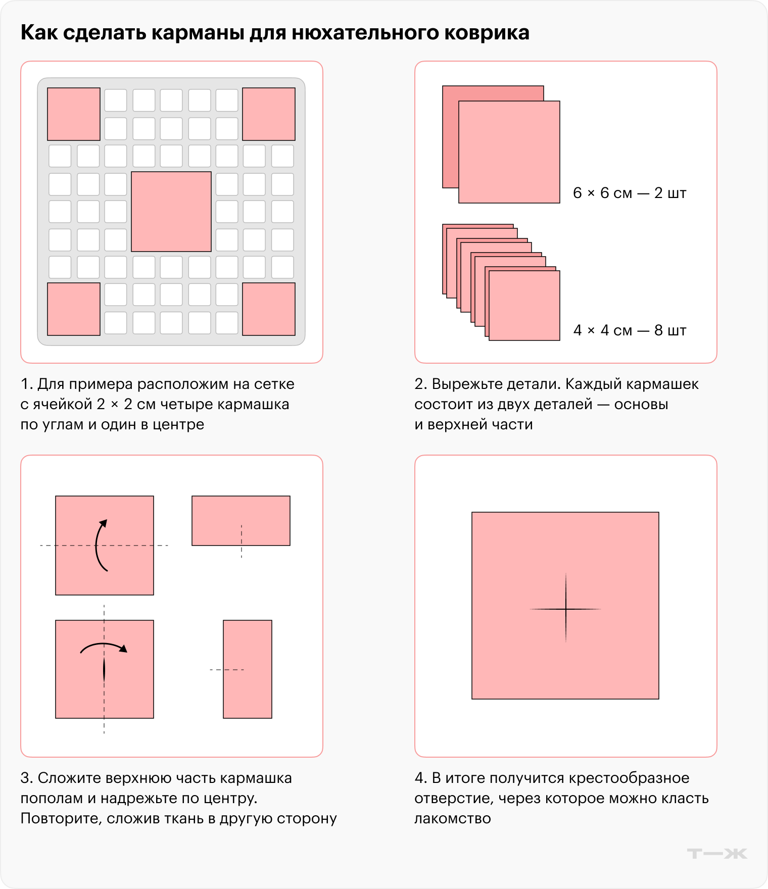 Нюхательный коврик — это игрушка, в складках которой собака ищет кусочки корма.