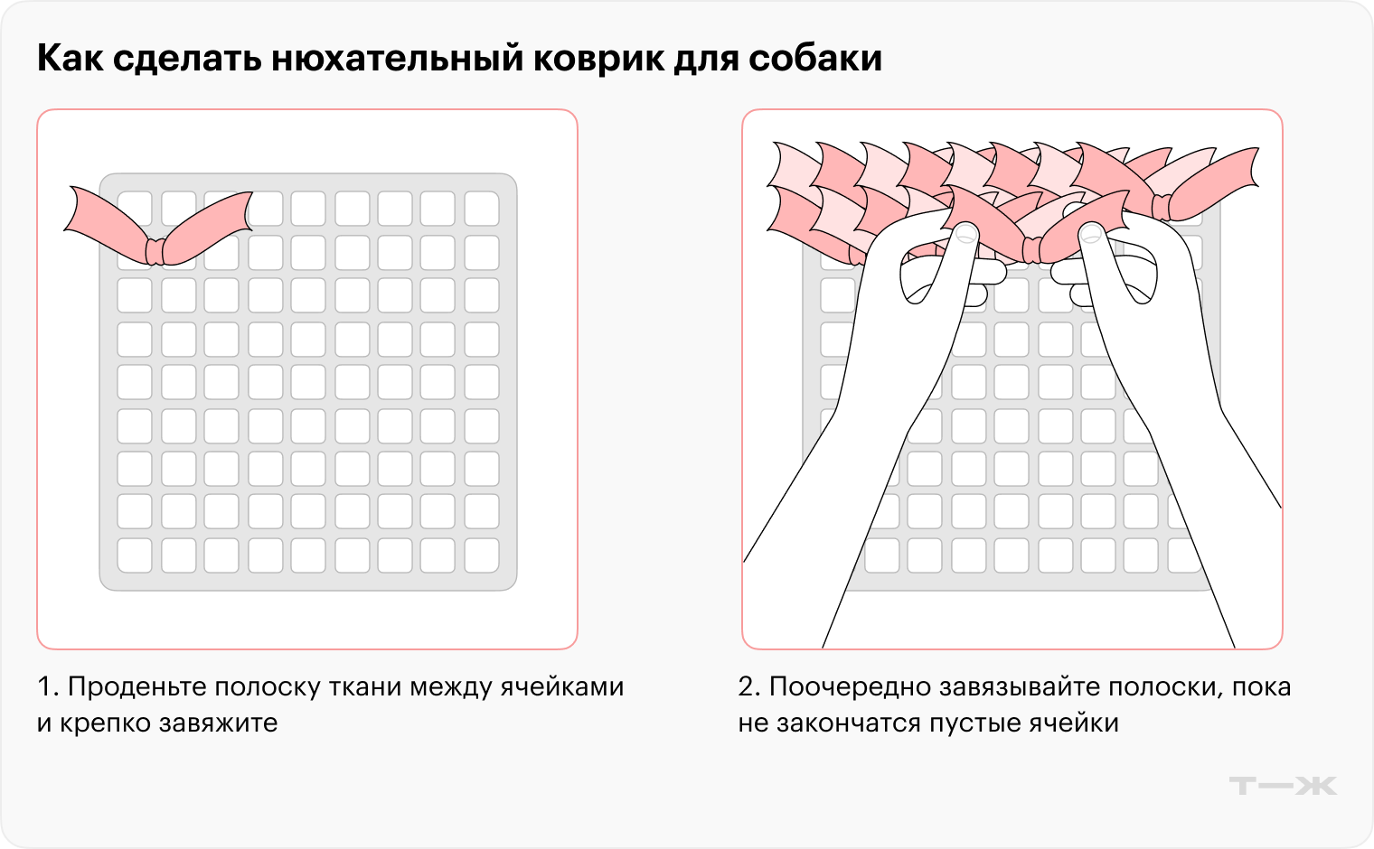 Занятие развлекает пса, помогает успокоиться и замедляет, если животное склонно быстро поглощать еду: корм придется добывать из хитросплетенной конструкции. Расскажу, как сделать нюхательный коврик своими руками.