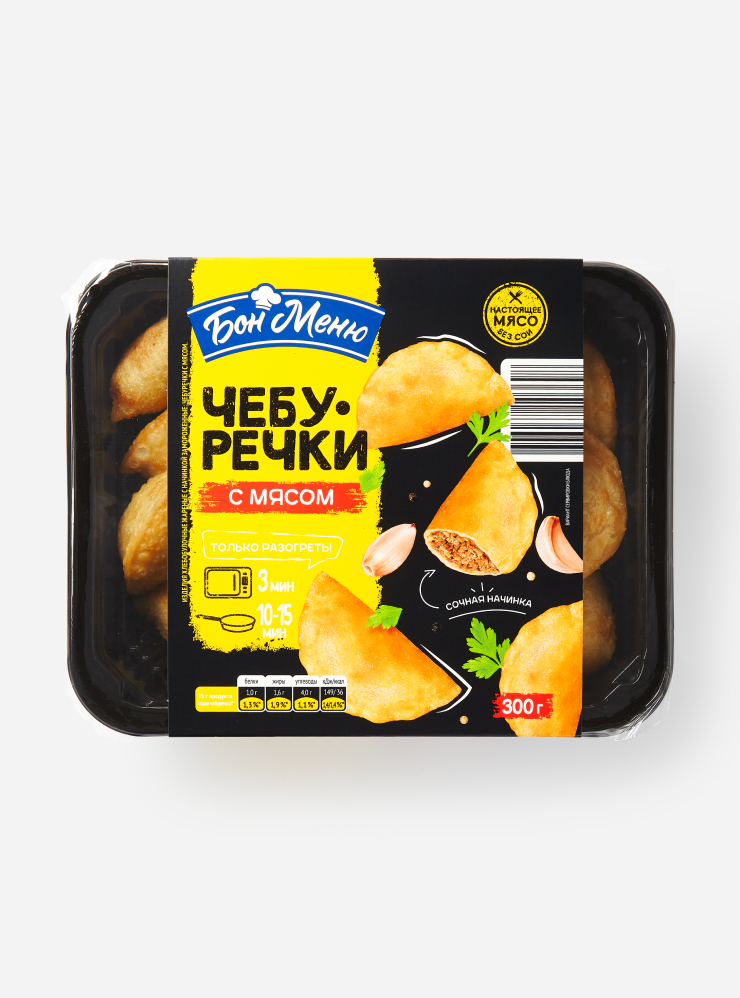 Производитель рекомендует разогревать «Чебуречки» в микроволновке либо на сковороде. Первый способ сносный, но мне больше нравится обжаривать их с растительным или сливочным маслом и парой зубчиков чеснока. Так готовить подобные полуфабрикаты меня когда-то научил друг. Получается что-то вроде жареных пельменей: корочка приятно хрустит, а начинка остается нежной. Подаю «Чебуречки» со сметаной или острым соусом.