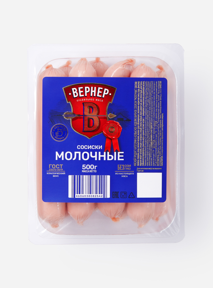 Очень люблю такие сосиски, но чаще всего есть их неприятно: в фарше много хрящей, вкус мяса перебивают соль и специи. Колбаски от «Вернер» совсем не такие: в них чувствуется свинина, фарш нежный и сочный, нет чересчур ярких приправ.