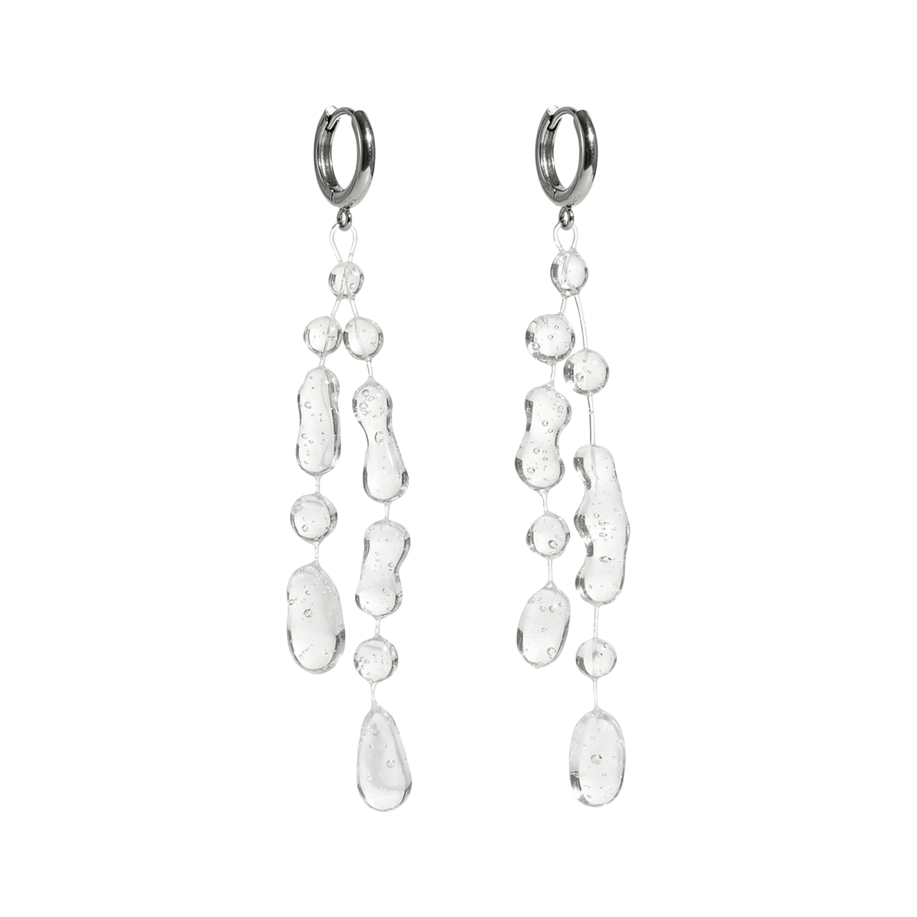 Мы не плачем, это просто роса упала… Серьги из ювелирной смолы вдохновлены летним утром, но вы можете трактовать их как угодно: например, как пот лица или слезы на асфальте во время рабочих будней