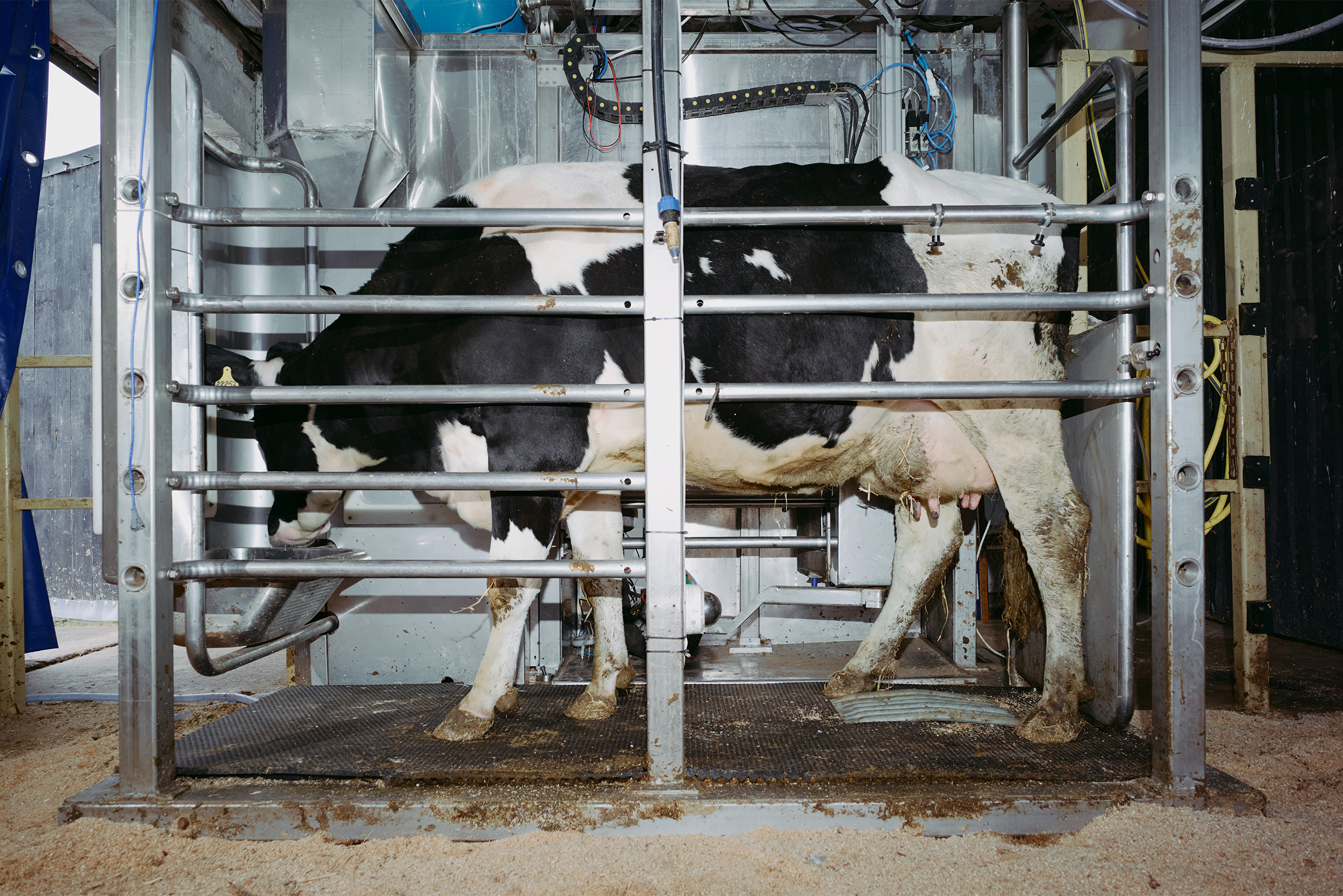 Робот выглядит как стойка: корова заходит, получает лакомство — комбикорм. Пока жует, манипулятор подсоединяет доильные стаканы. Такие роботы не только облегчают труд, но и увеличивают объем надоев. Корове комфортнее доиться тогда, когда ей хочется, а не по расписанию. Молоко вырабатывается неравномерно — все зависит от гормонального фона, температуры, корма и стресса. Иногда корова хочет доиться четыре раза в день, иногда два. Когда она делает это в собственном ритме, чувствует себя спокойнее, ест больше и, как следствие, дает больше молока.