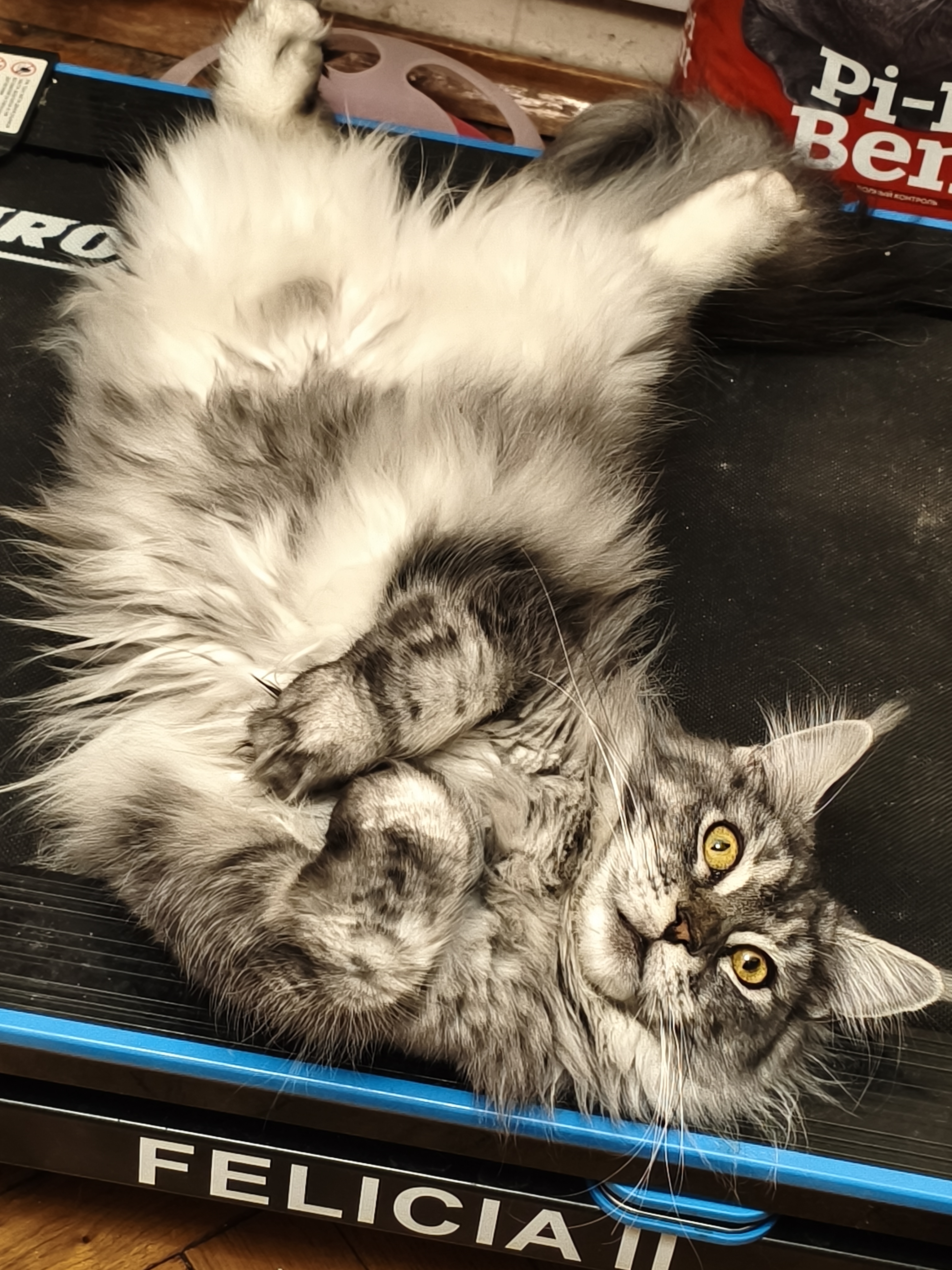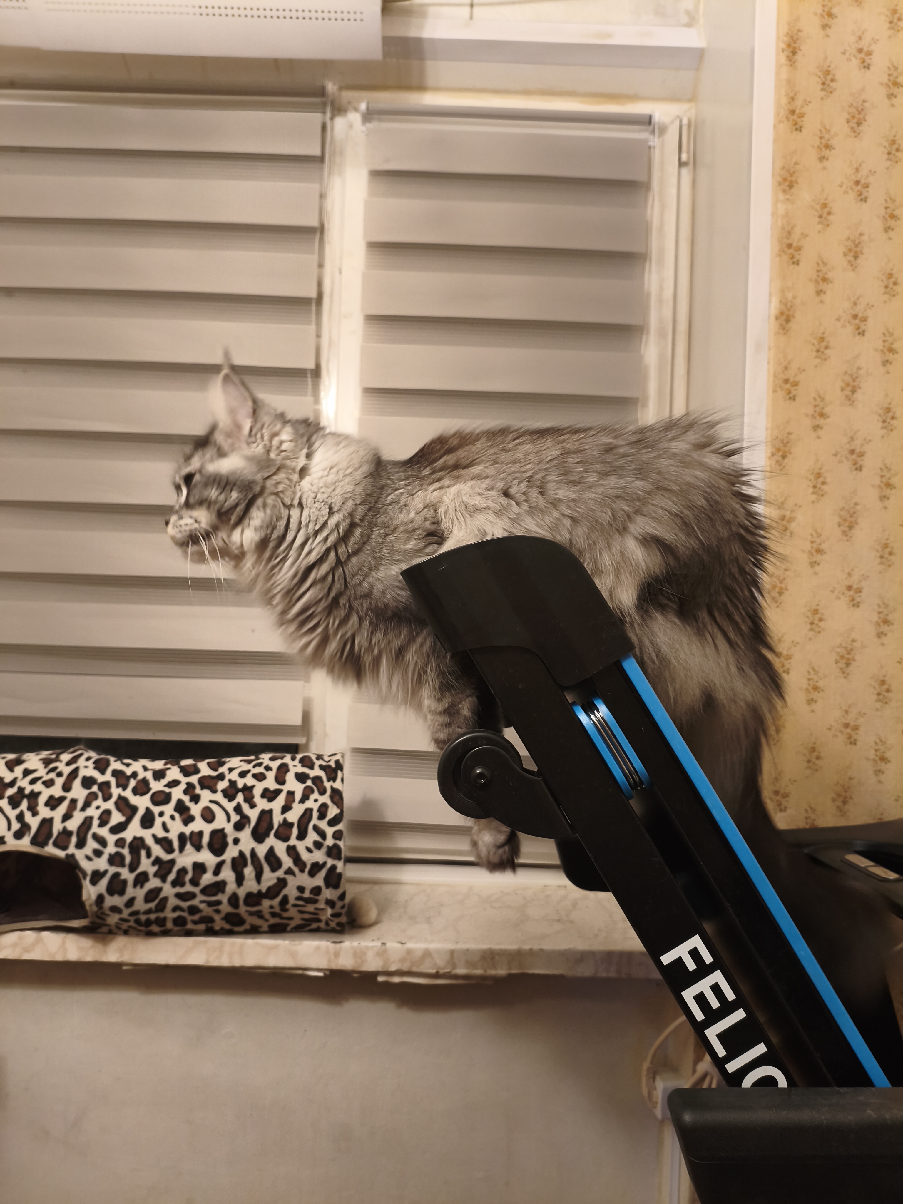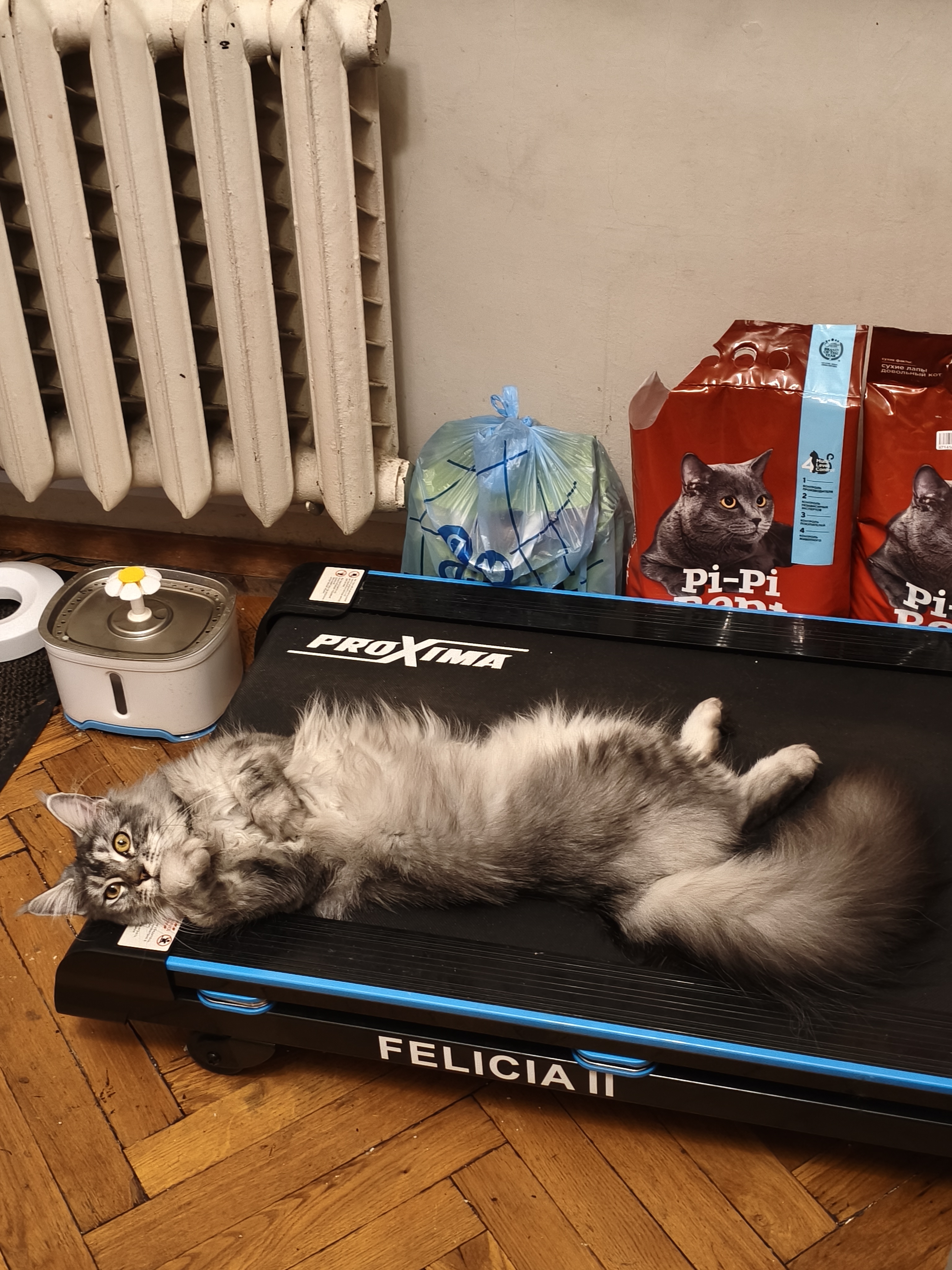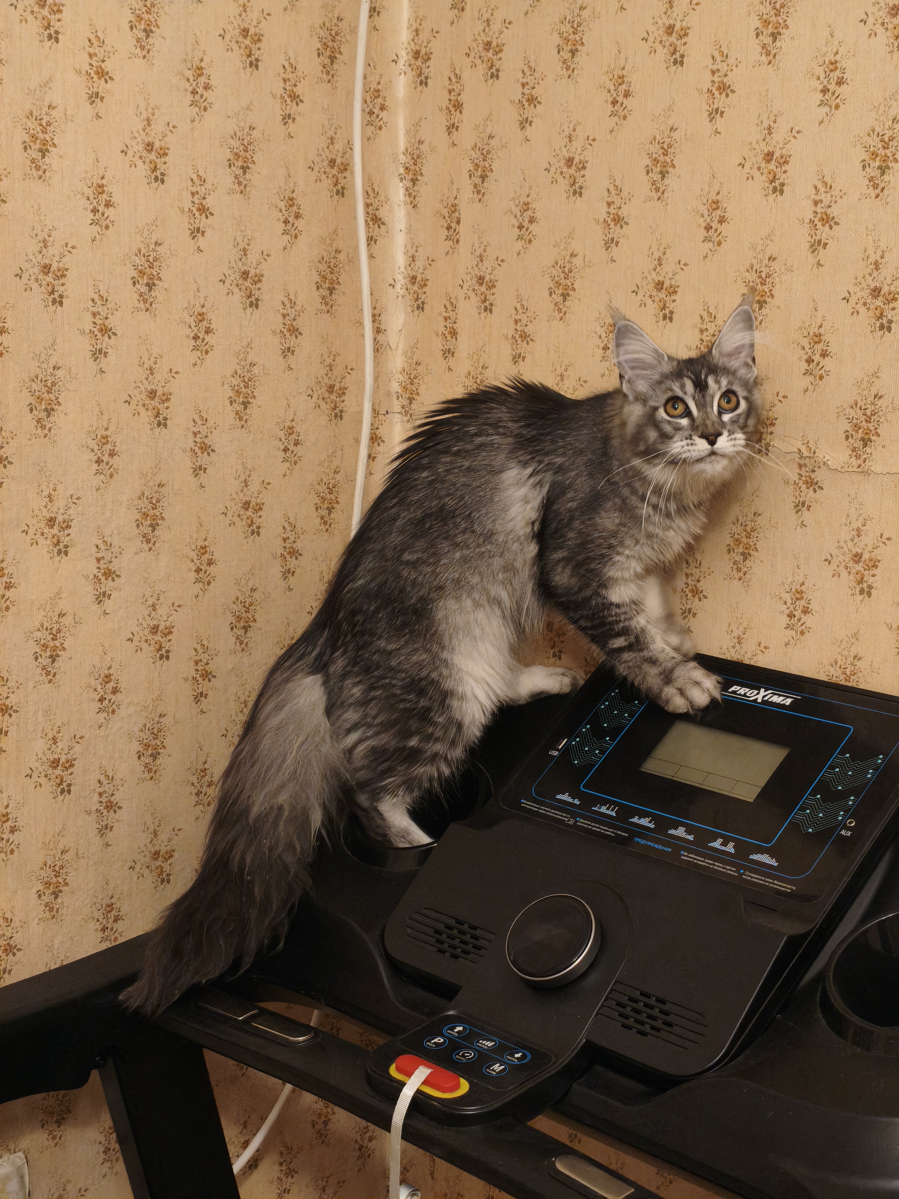 Фото питомца: мейн-кун Кисик проводит мастер-класс по использованию беговой дорожки