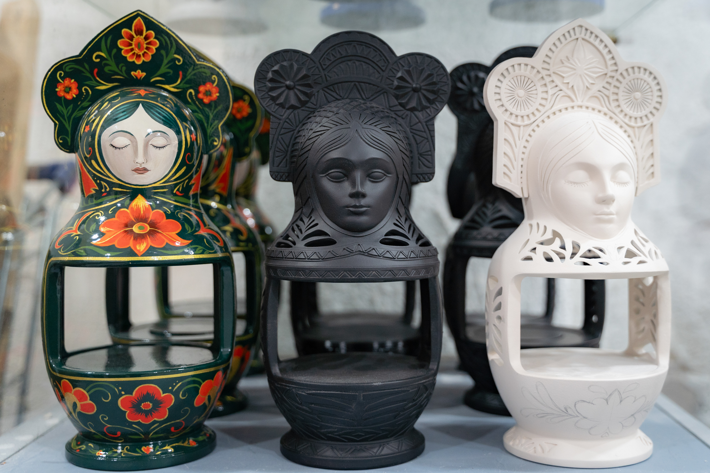 Многие такие заказы мы не показываем, хотя они очень сильные. Большое количество матрешек уходит за границу — нашим соотечественникам в Майами, Денвер, Ванкувер, Европу, Азию, Австралию. Людям хочется иметь рядом что-то родное, русское.